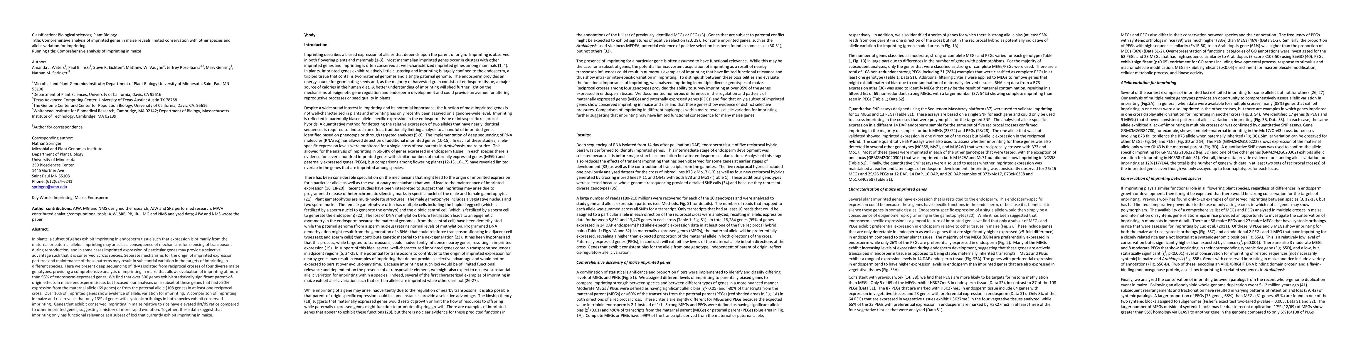 A comprehensive analysis of maize genes reveals that only 13% of imprinted genes show conserved imprinting across species, with the majority exhibiting allelic variation for imprinting and limited conservation with other species.
