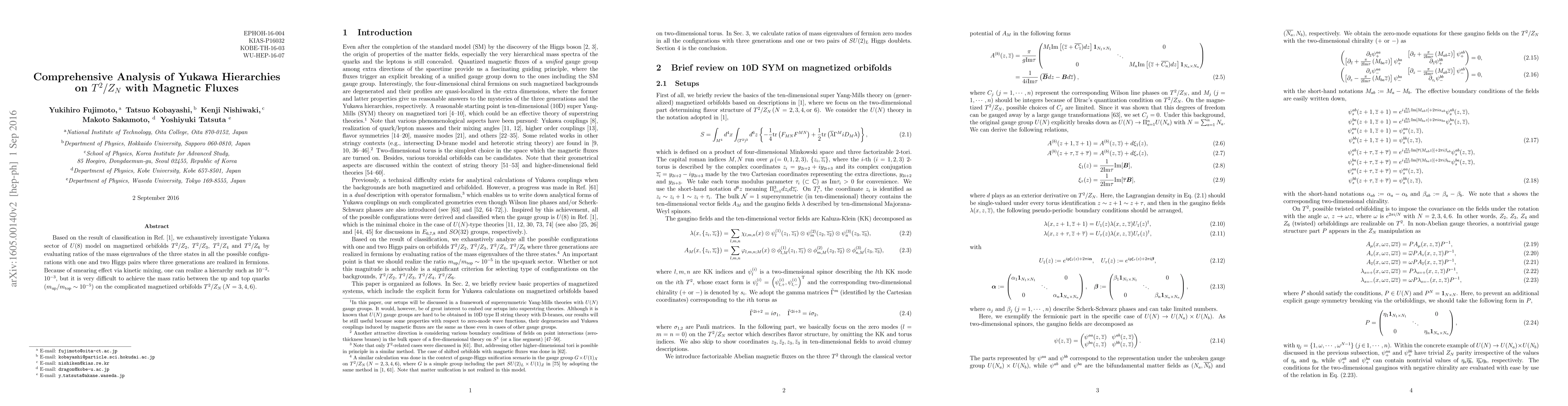 This paper thoroughly examines the Yukawa hierarchies in a $U(8)$ model on various magnetized orbifolds $T^2/Z_N$ (with $N=2,3,4,6$), focusing on the mass ratios of fermion generations. Despite achieving hierarchies via kinetic mixing, the study finds it challenging to attain the precise mass ratio between up and top quarks on complex magnetized orbifolds.