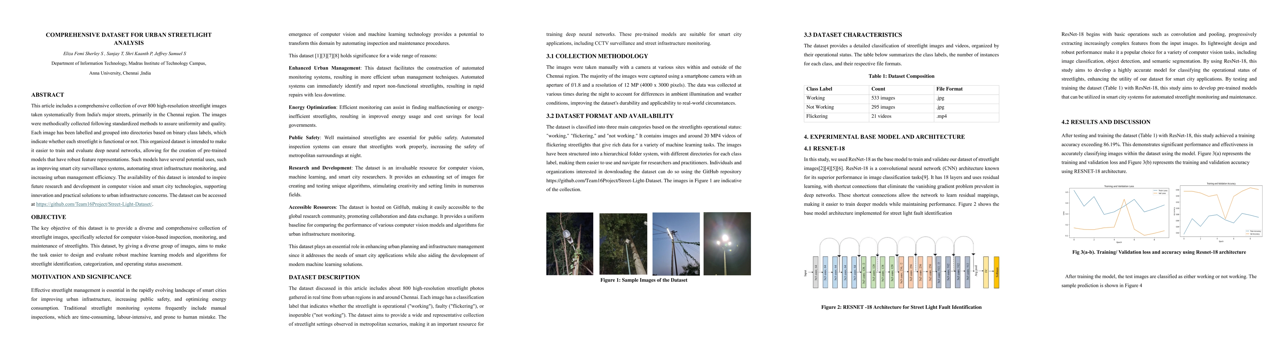 This paper presents a dataset of over 800 high-resolution streetlight images from Chennai, India, labeled for functionality, aimed at training deep neural networks for smart city surveillance and infrastructure monitoring. The dataset is intended to spur advancements in computer vision and urban management.