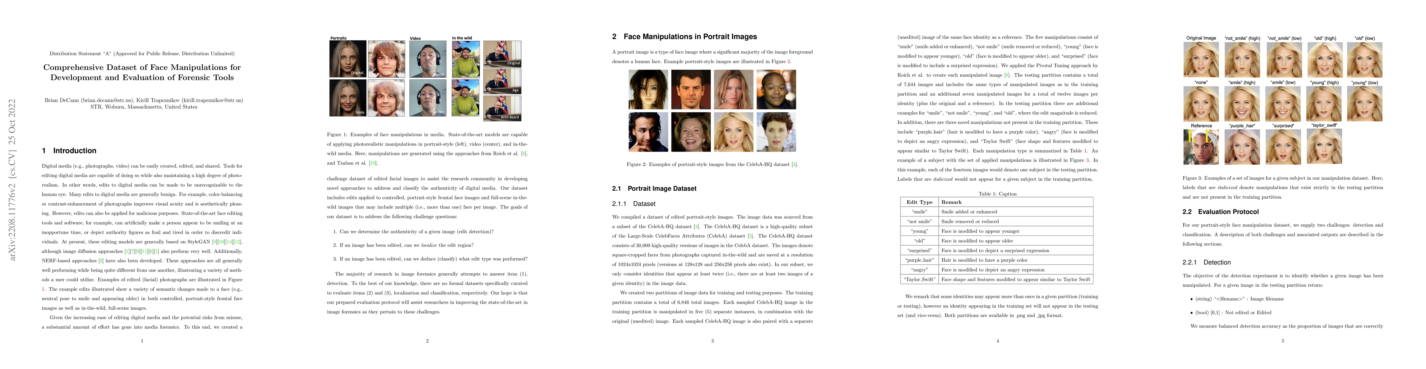 This paper presents a comprehensive dataset of manipulated facial images designed to aid in the development and evaluation of forensic tools for detecting and classifying digital media edits. The dataset aims to address challenges in edit detection, localization, and classification, with a particular focus on enhancing the state-of-the-art in image forensics.