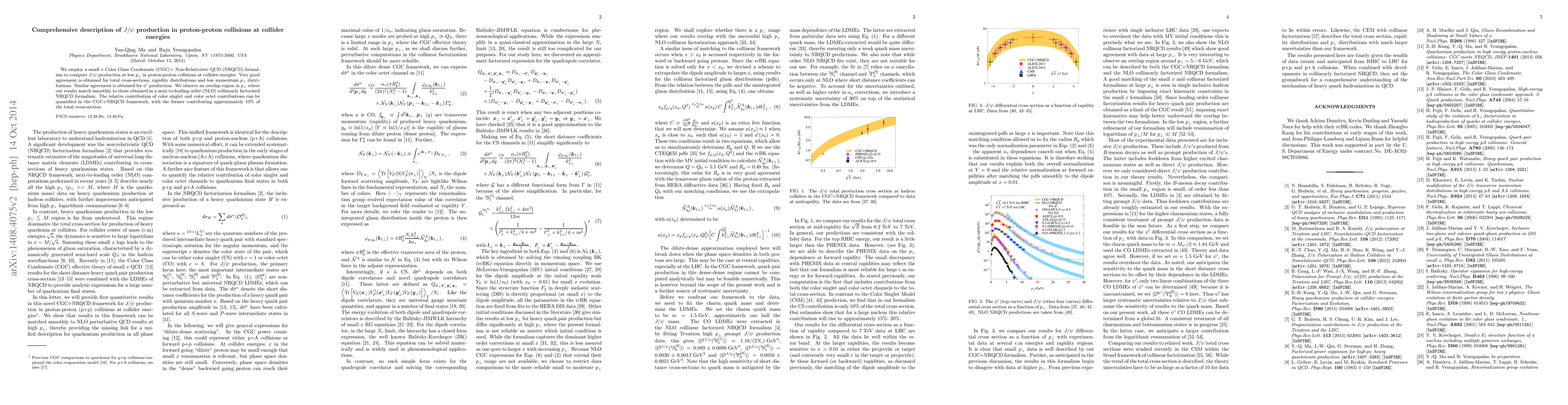 This paper uses a Color Glass Condensate (CGC)+ Non-Relativistic QCD (NRQCD) framework to study $J/\psi$ production in proton-proton collisions, achieving good agreement with experimental data on total cross-sections and momentum distributions. The study also quantifies the relative contributions of color singlet and color octet states, with the former contributing about 10% to the total cross-section.