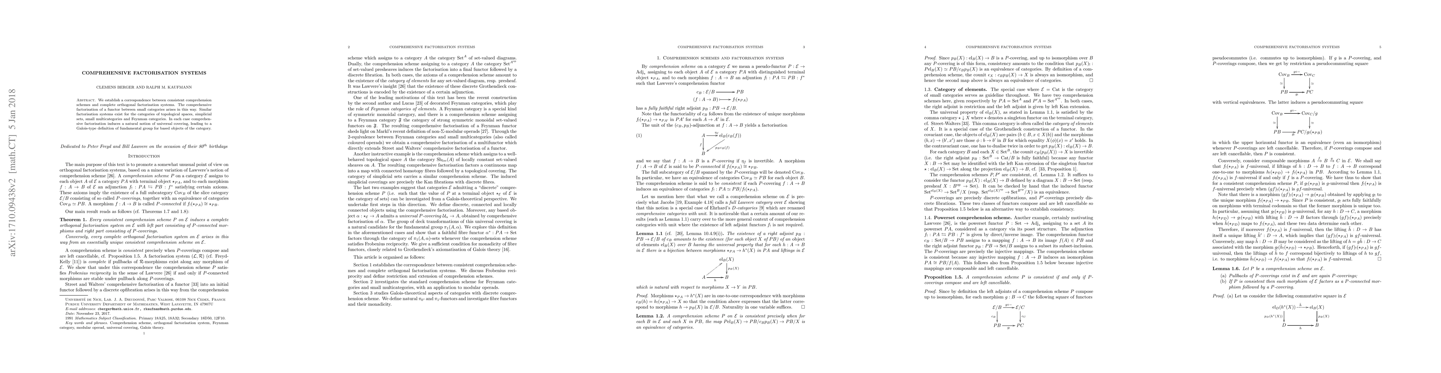 We establish a correspondence between consistent comprehension schemes and complete orthogonal factorisation systems. The comprehensive factorisation of a functor between small categories arises in this way. Similar factorisation systems exist for the categories of topological spaces, simplicial sets, small multicategories and Feynman categories. In each case comprehensive factorisation induces a natural notion of universal covering, leading to a Galois-type definition of fundamental group for based objects of the category.