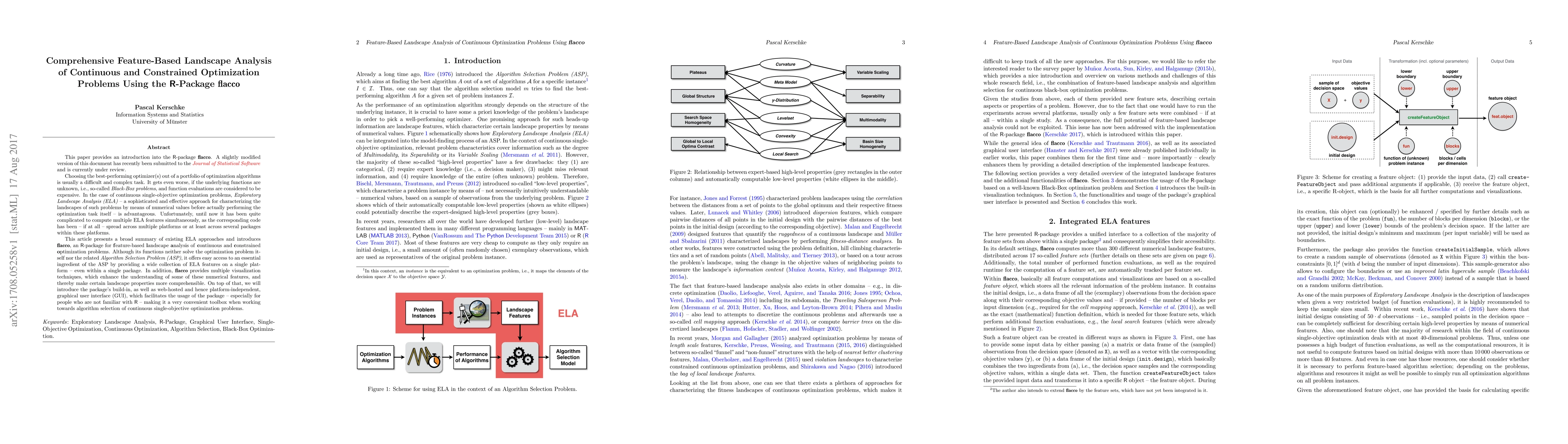 This paper introduces flacco, an R-package for comprehensive feature-based landscape analysis of continuous and constrained optimization problems, providing a unified platform for multiple Exploratory Landscape Analysis (ELA) features. It aims to simplify the complex task of algorithm selection by offering visualization tools and a user-friendly GUI, even for those unfamiliar with R.