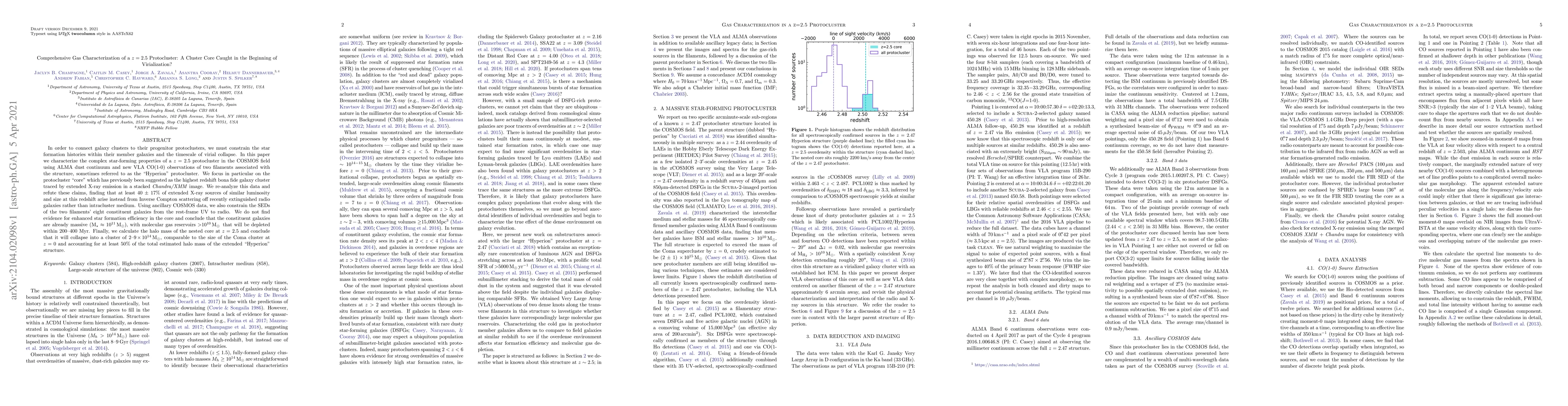In order to connect galaxy clusters to their progenitor protoclusters, we must constrain the star formation histories within their member galaxies and the timescale of virial collapse. In this paper we characterize the complex star-forming properties of a $z=2.5$ protocluster in the COSMOS field using ALMA dust continuum and new VLA CO(1-0) observations of two filaments associated with the structure, sometimes referred to as the "Hyperion" protocluster. We focus in particular on the protocluster "core" which has previously been suggested as the highest redshift bona fide galaxy cluster traced by extended X-ray emission in a stacked Chandra/XMM image. We re-analyze this data and refute these claims, finding that at least 40 $\pm$ 17% of extended X-ray sources of similar luminosity and size at this redshift arise instead from Inverse Compton scattering off recently extinguished radio galaxies rather than intracluster medium. Using ancillary COSMOS data, we also constrain the SEDs of the two filaments' eight constituent galaxies from the rest-frame UV to radio. We do not find evidence for enhanced star formation efficiency in the core and conclude that the constituent galaxies are already massive (M$_{\star} \approx 10^{11} M_{\odot}$), with molecular gas reservoirs $>10^{10} M_{\odot}$ that will be depleted within 200-400 Myr. Finally, we calculate the halo mass of the nested core at $z=2.5$ and conclude that it will collapse into a cluster of 2-9 $\times 10^{14} M_{\odot}$, comparable to the size of the Coma cluster at $z=0$ and accounting for at least 50% of the total estimated halo mass of the extended "Hyperion" structure.