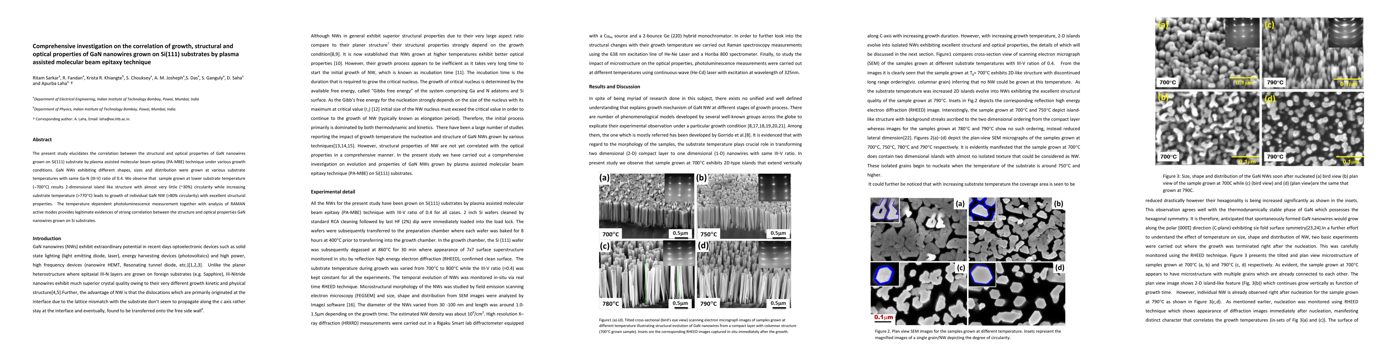 This study investigates the structural and optical properties of GaN nanowires grown on Si(111) substrates using PA-MBE, finding that lower temperatures (~700°C) produce 2D island-like structures with low circularity, while higher temperatures (>770°C) yield well-formed, circular nanowires with strong structural-optical correlations confirmed by photoluminescence and Raman analysis.