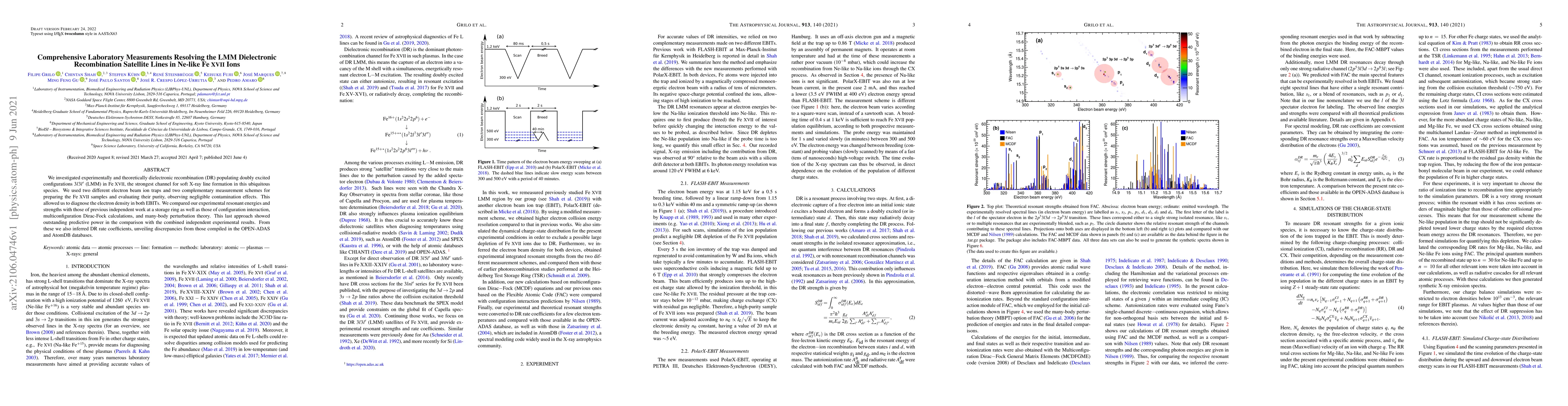 This study experimentally and theoretically investigates dielectronic recombination in Ne-like Fe XVII ions, focusing on LMM satellite lines. The research reveals discrepancies between measured and compiled recombination rate coefficients, highlighting the predictive power of many-body perturbation theory.