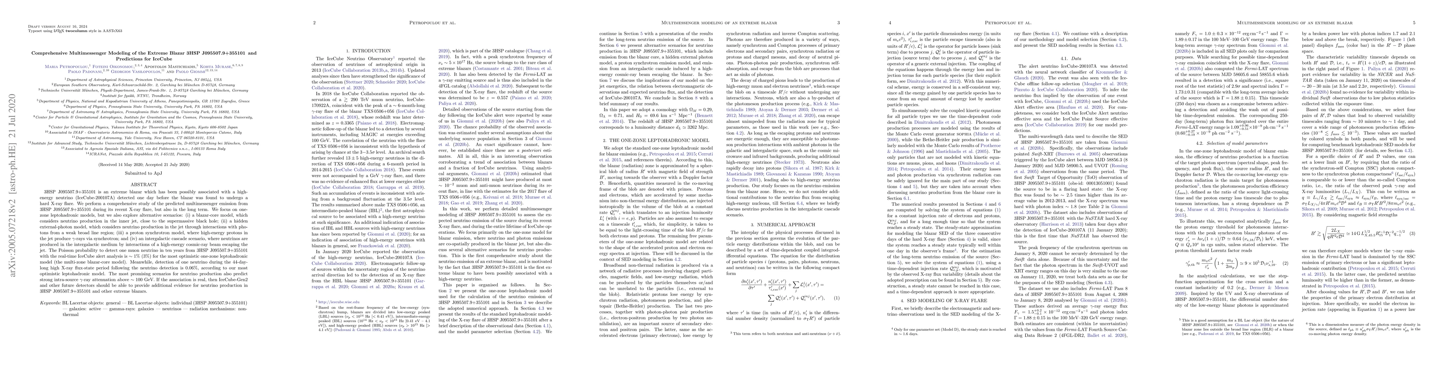 This paper models the extreme blazar 3HSP J095507.9+355101, exploring various multimessenger emission scenarios, including neutrino production linked to a recent X-ray flare. The study predicts a 1% chance of detecting a neutrino with IceCube over ten years, with future detectors potentially providing more evidence if the neutrino-blazar association holds true.