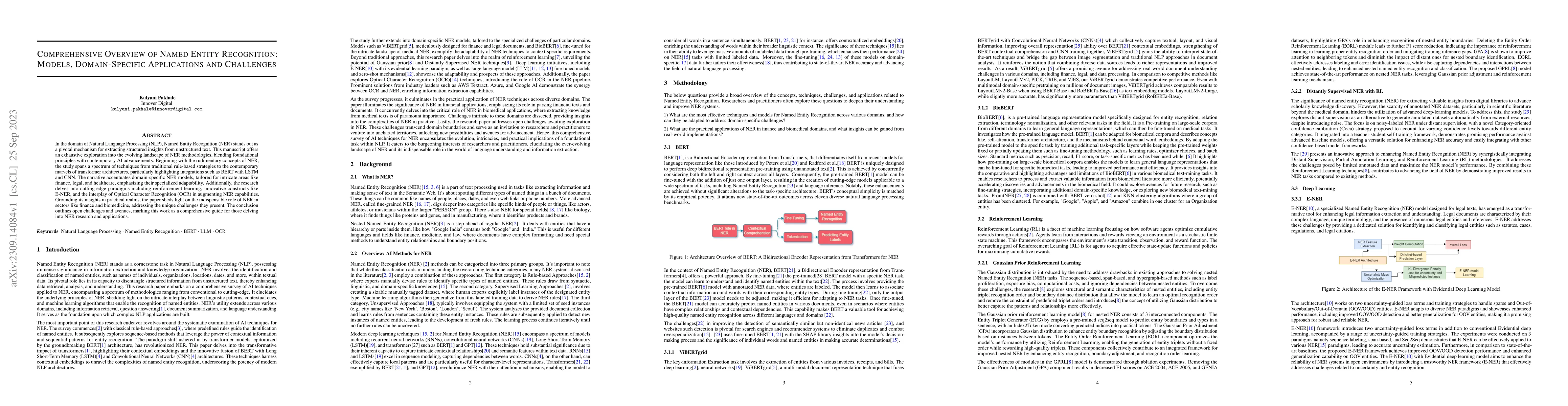 In the domain of Natural Language Processing (NLP), Named Entity Recognition (NER) stands out as a pivotal mechanism for extracting structured insights from unstructured text. This manuscript offers an exhaustive exploration into the evolving landscape of NER methodologies, blending foundational principles with contemporary AI advancements. Beginning with the rudimentary concepts of NER, the study spans a spectrum of techniques from traditional rule-based strategies to the contemporary marvels of transformer architectures, particularly highlighting integrations such as BERT with LSTM and CNN. The narrative accentuates domain-specific NER models, tailored for intricate areas like finance, legal, and healthcare, emphasizing their specialized adaptability. Additionally, the research delves into cutting-edge paradigms including reinforcement learning, innovative constructs like E-NER, and the interplay of Optical Character Recognition (OCR) in augmenting NER capabilities. Grounding its insights in practical realms, the paper sheds light on the indispensable role of NER in sectors like finance and biomedicine, addressing the unique challenges they present. The conclusion outlines open challenges and avenues, marking this work as a comprehensive guide for those delving into NER research and applications.