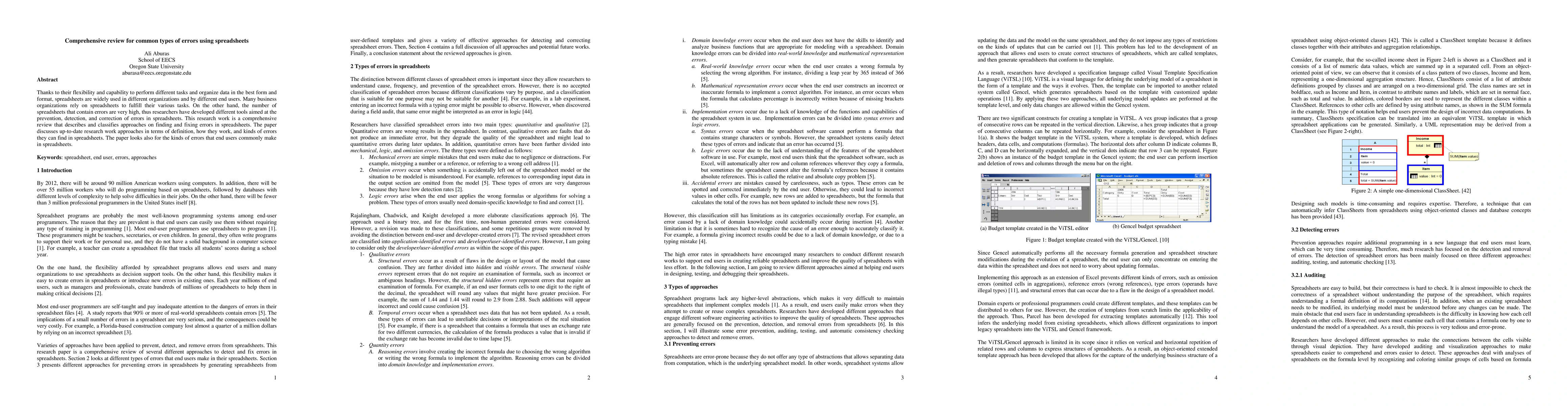 This paper provides a comprehensive review of methods for detecting and correcting errors in spreadsheets, highlighting common user-made mistakes, and discussing the latest research tools and techniques for error prevention and correction. It classifies these approaches based on their definitions, functionalities, and the types of errors they address.