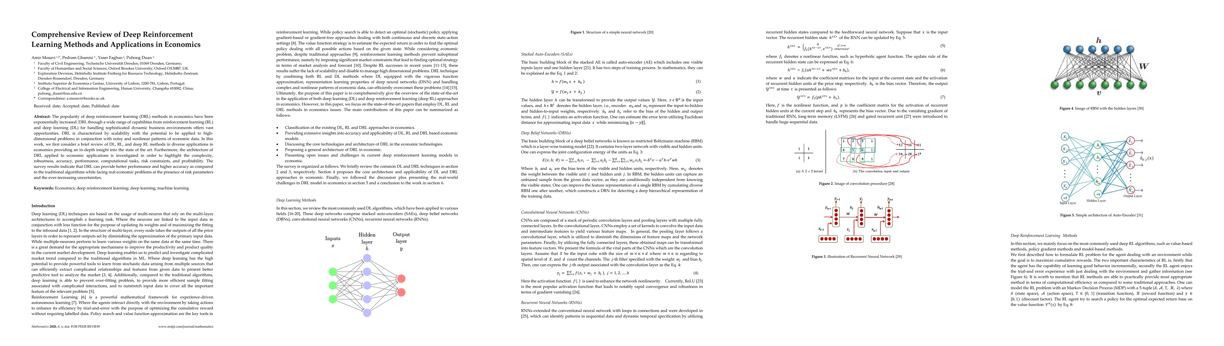 This paper reviews deep reinforcement learning (DRL) methods and their applications in economics, highlighting DRL's scalability and effectiveness in handling complex economic dynamics. The study finds that DRL outperforms traditional algorithms in economic scenarios, offering improved performance, robustness, and accuracy despite uncertainties and risk parameters.