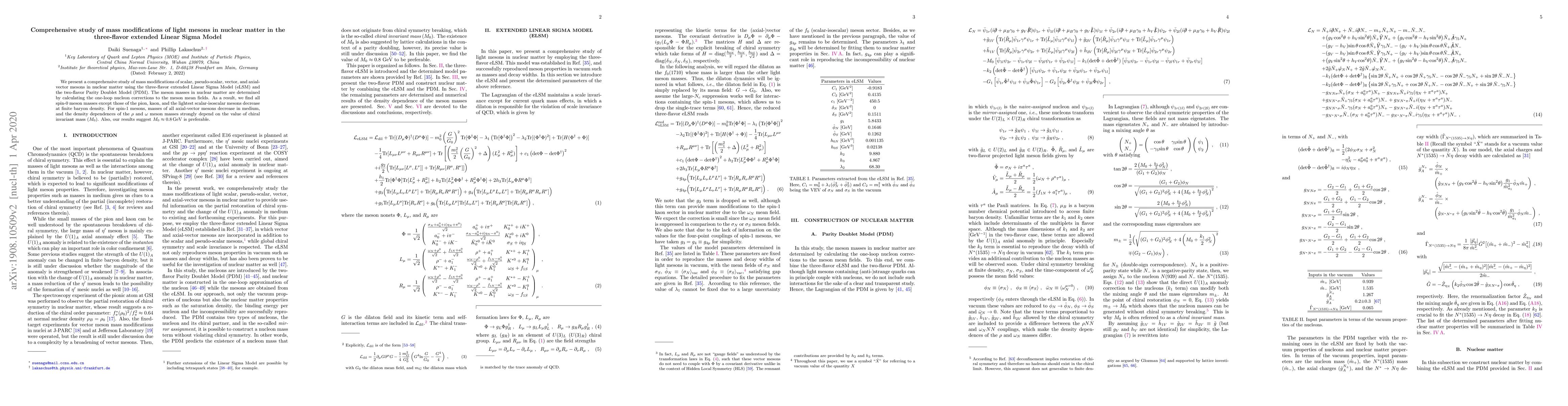 We present a comprehensive study of mass modifications of scalar, pseudo-scalar, vector, and axial-vector mesons in nuclear matter using the three-flavor extended Linear Sigma Model (eLSM) and the two-flavor Parity Doublet Model (PDM). The meson masses in nuclear matter are determined by calculating the one-loop nucleon corrections to the meson mean fields. As a result, we find all spin-$0$ meson masses except those of the pion, kaon, and the lightest scalar-isoscalar mesons decrease at finite baryon density. For spin-$1$ mesons, masses of all axial-vector mesons decrease in medium, and the density dependences of the $\rho$ and $\omega$ meson masses strongly depend on the value of chiral invariant mass ($M_0$). Also, our results suggest $M_0\approx0.8\, {\rm GeV}$ is preferable.
