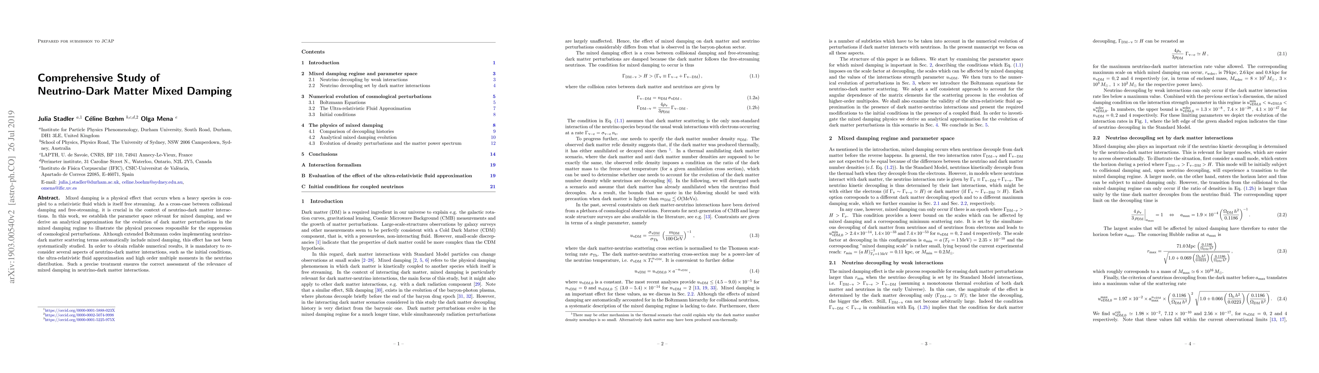 This research paper explores mixed damping, a physical effect in neutrino-dark matter interactions. It establishes relevant parameter spaces, derives an analytical approximation for dark matter perturbation evolution, and emphasizes the need for precise numerical treatment in neutrino-dark matter interaction studies.