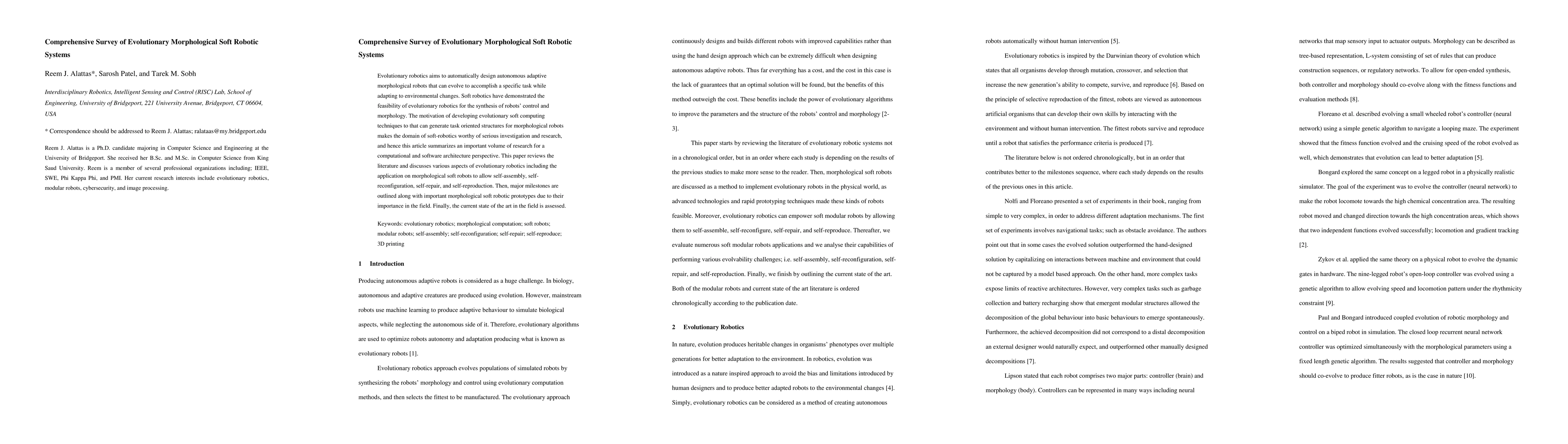 This paper provides a comprehensive survey of evolutionary morphological soft robotic systems, reviewing literature and discussing evolutionary robotics' application to soft robots for self-assembly, self-reconfiguration, and self-repair. It assesses the current state of the art and highlights significant milestones and prototypes.