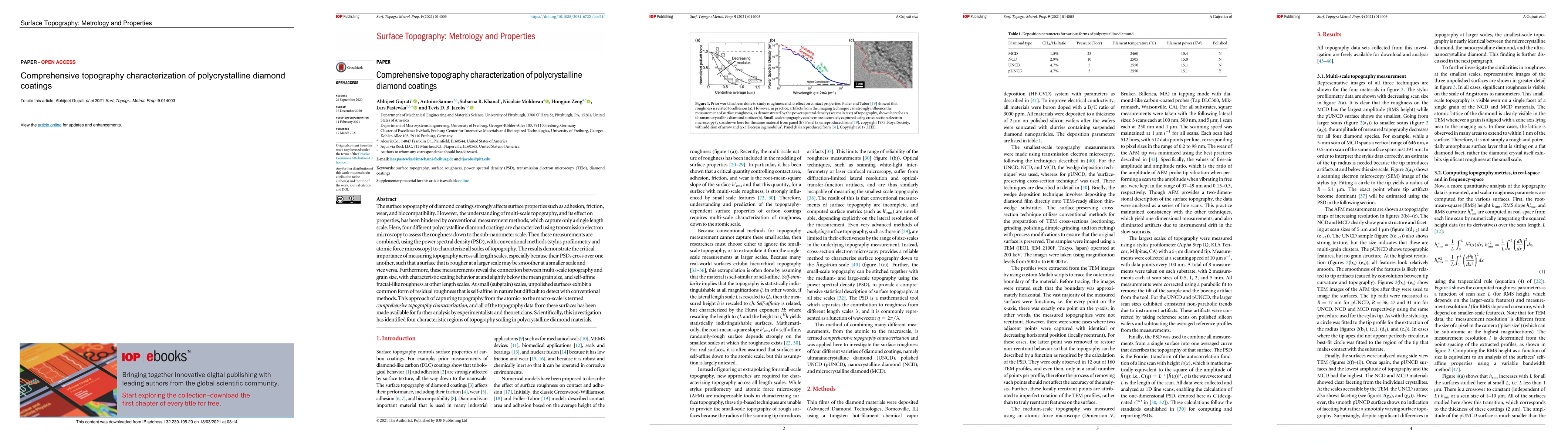 This paper characterizes the multi-scale topography of polycrystalline diamond coatings using advanced microscopy and conventional methods, revealing the importance of measuring roughness across all scales. The study identifies distinct scaling regions and highlights the connection between topography and grain size, providing comprehensive data for further analysis.