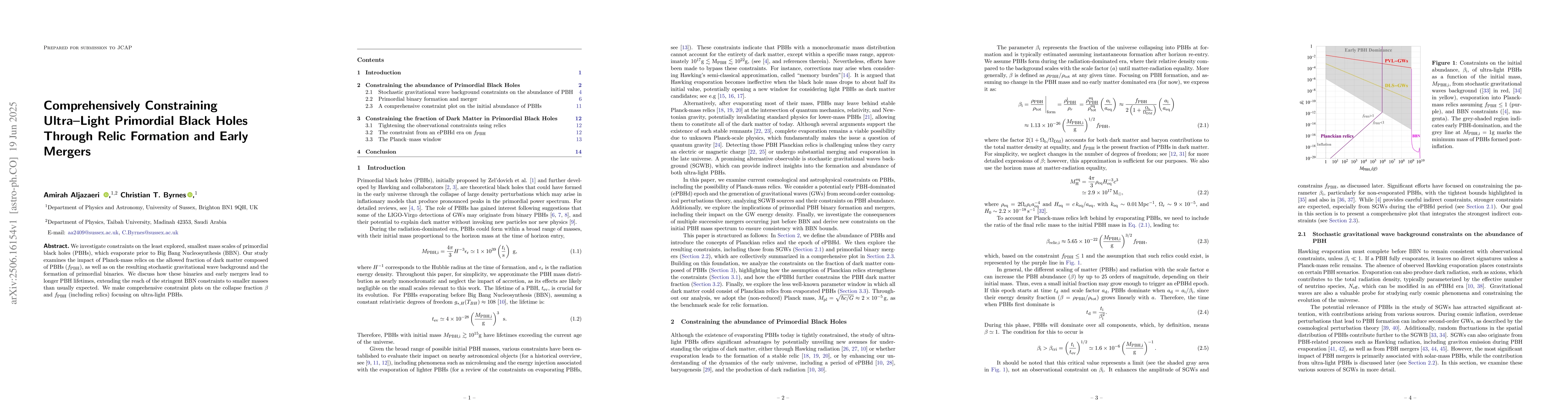 We investigate constraints on the least explored, smallest mass scales of primordial black holes (PBHs), which evaporate prior to Big Bang Nucleosynthesis (BBN). Our study examines the impact of Planck-mass relics on the allowed fraction of dark matter composed of PBHs ($f_{PBH}$), as well as on the resulting stochastic gravitational wave background and the formation of primordial binaries. We discuss how these binaries and early mergers lead to longer PBH lifetimes, extending the reach of the stringent BBN constraints to smaller masses than usually expected. We make comprehensive constraint plots on the collapse fraction $\beta$ and $f_{PBH}$ (including relics), focusing on ultra-light PBHs.
