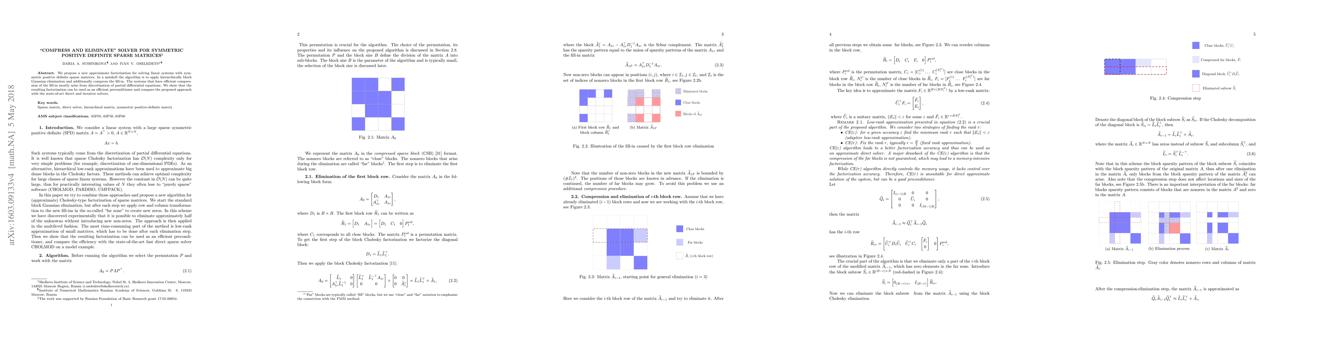 This paper introduces an innovative "compress and eliminate" solver for solving linear systems involving symmetric positive definite sparse matrices by applying hierarchical block Gaussian elimination and compressing fill-in. The proposed method is shown to serve as an efficient preconditioner and compares favorably against state-of-the-art direct and iterative solvers.