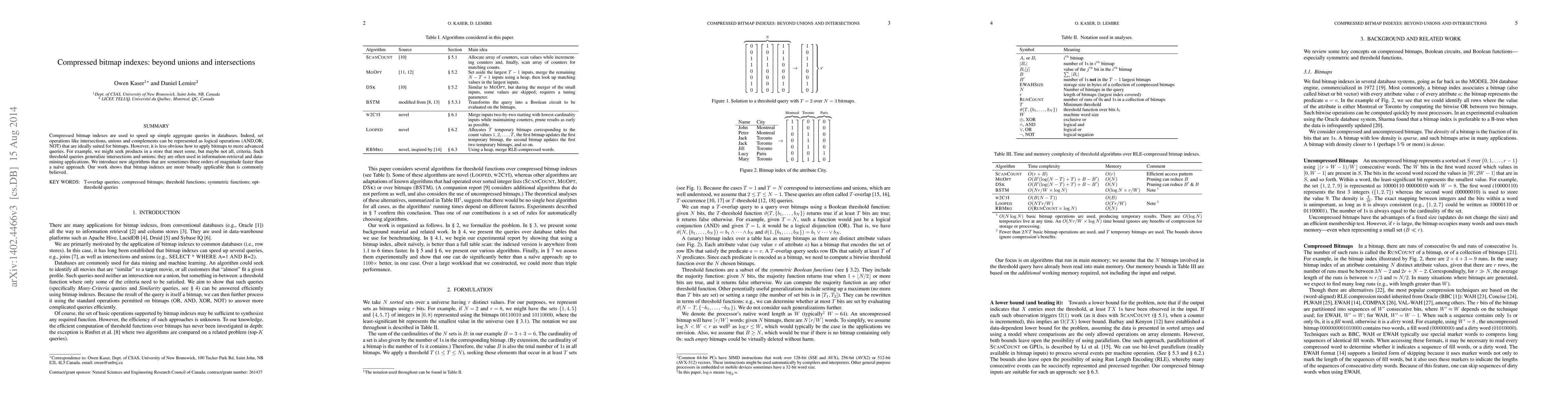 This paper introduces advanced algorithms for compressed bitmap indexes to efficiently handle threshold queries, which generalize intersections and unions, thus broadening the applicability of bitmap indexes beyond simple set operations. These algorithms achieve significant speedups, sometimes three orders of magnitude faster than traditional methods.