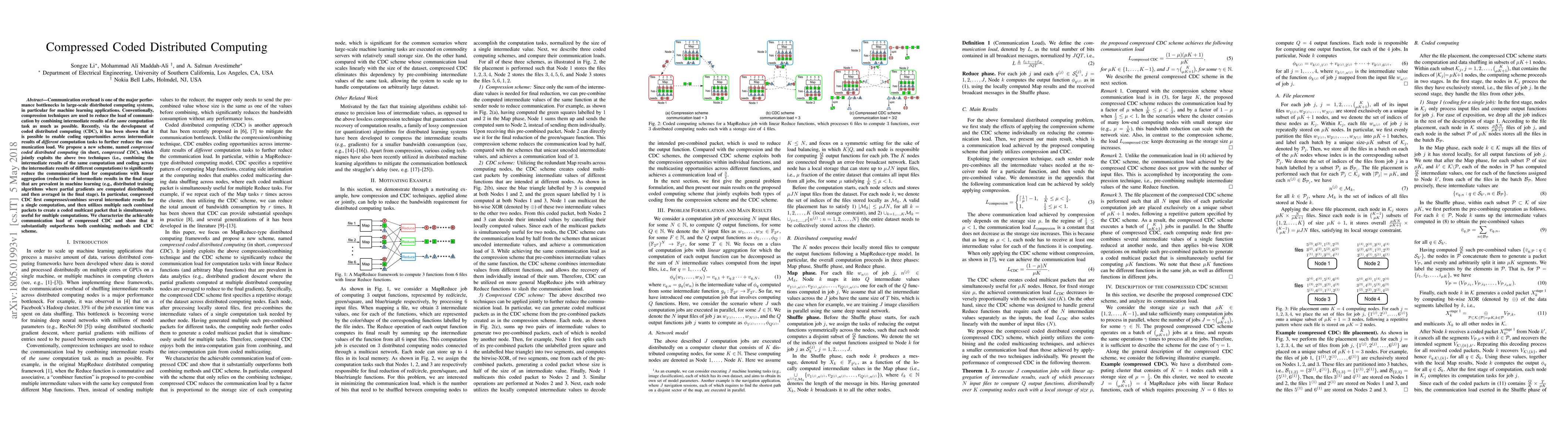The paper introduces a new scheme called compressed coded distributed computing (compressed CDC) to significantly reduce communication overhead in large-scale distributed computing, especially in machine learning. It combines result compression and coded multicast to optimize the aggregation of intermediate results, outperforming both traditional compression and coded distributed computing methods.