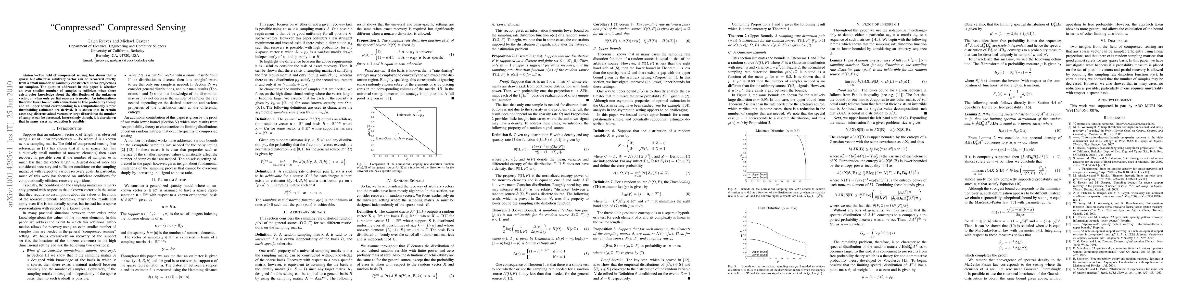 The field of compressed sensing has shown that a sparse but otherwise arbitrary vector can be recovered exactly from a small number of randomly constructed linear projections (or samples). The question addressed in this paper is whether an even smaller number of samples is sufficient when there exists prior knowledge about the distribution of the unknown vector, or when only partial recovery is needed. An information-theoretic lower bound with connections to free probability theory and an upper bound corresponding to a computationally simple thresholding estimator are derived. It is shown that in certain cases (e.g. discrete valued vectors or large distortions) the number of samples can be decreased. Interestingly though, it is also shown that in many cases no reduction is possible.