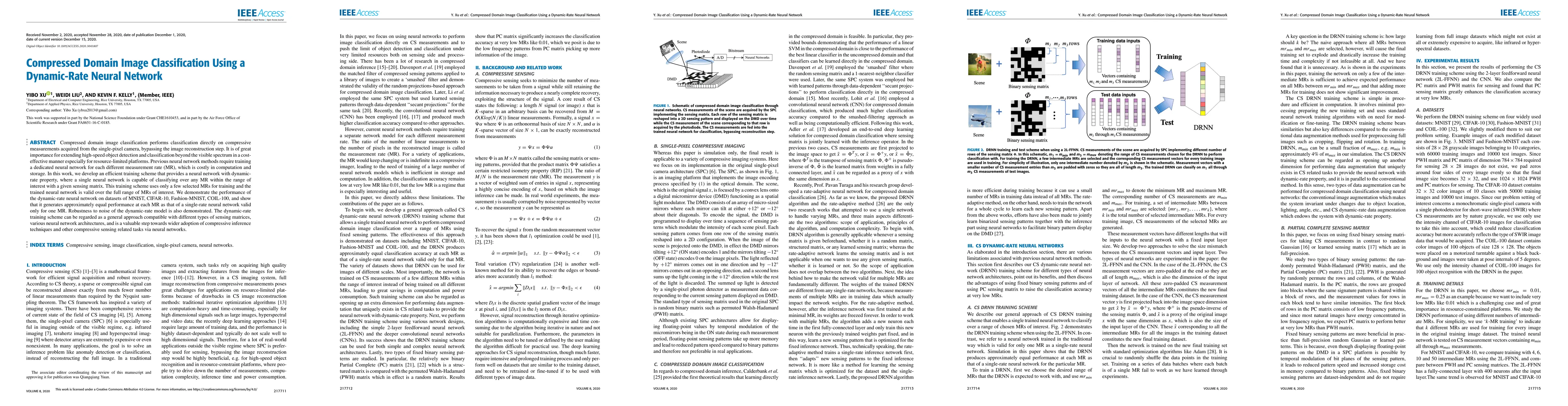 This paper proposes a dynamic-rate neural network for compressed domain image classification, enabling a single network to classify images at various measurement rates without retraining. The method demonstrates comparable performance across different rates and robustness to noise, suggesting broader applicability for resource-limited platforms.