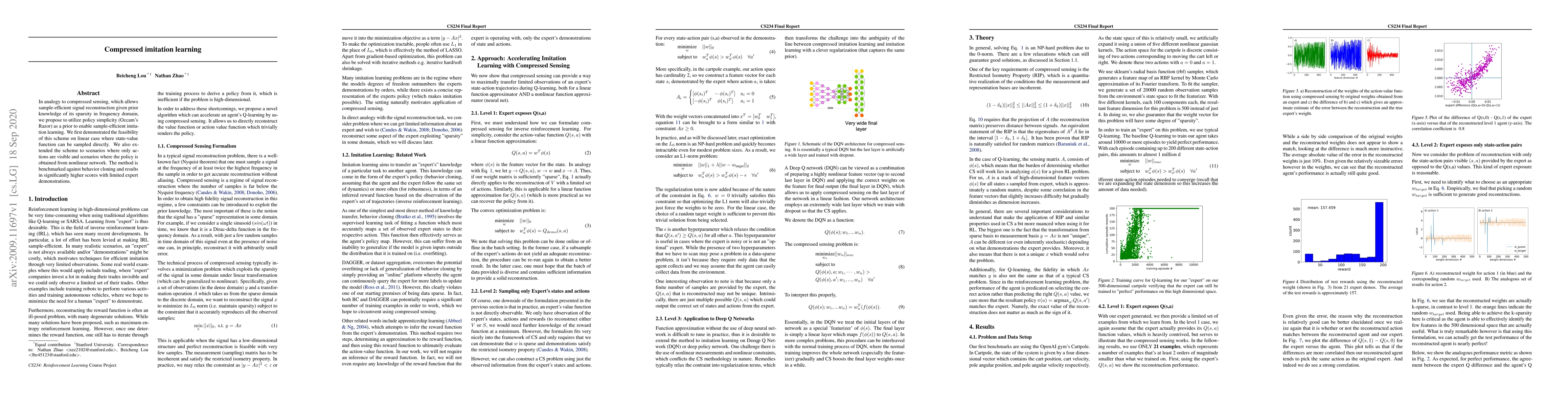 In analogy to compressed sensing, which allows sample-efficient signal reconstruction given prior knowledge of its sparsity in frequency domain, we propose to utilize policy simplicity (Occam's Razor) as a prior to enable sample-efficient imitation learning. We first demonstrated the feasibility of this scheme on linear case where state-value function can be sampled directly. We also extended the scheme to scenarios where only actions are visible and scenarios where the policy is obtained from nonlinear network. The method is benchmarked against behavior cloning and results in significantly higher scores with limited expert demonstrations.