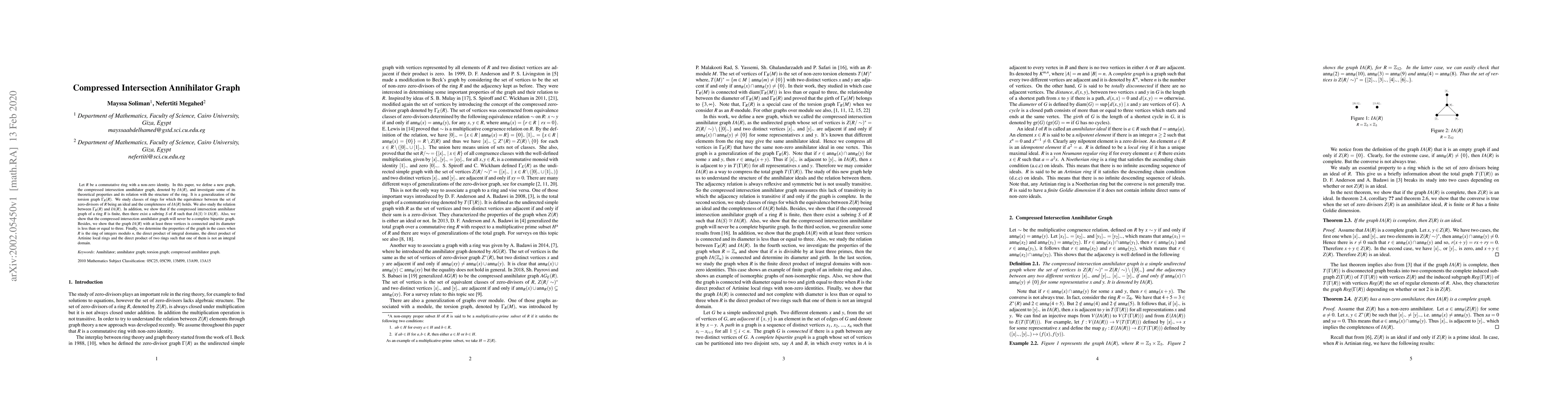 Let R be a commutative ring with a non-zero identity. In this paper, we define a new graph, the compressed intersection annihilator graph, denoted by $IA(R)$, and investigate some of its theoretical properties and its relation with the structure of the ring. It is a generalization of the torsion graph $\Gamma_{R}(R)$. We study classes of rings for which the equivalence between the set of zero-divisors of $R$ being an ideal and the completeness of $IA(R)$ holds. We also study the relation between $\Gamma_{R}(R)$ and $IA(R)$. In addition, we show that if the compressed intersection annihilator graph of a ring $R$ is finite, then there exists a subring $S$ of $R$ such that $IA(S)\cong IA(R)$. Also, we show that the compressed intersection annihilator graph will never be a complete bipartite graph. Besides, we show that the graph $IA(R)$ with at least three vertices is connected and its diameter is less than or equal to three. Finally, we determine the properties of the graph in the cases when $R$ is the ring of integers modulo $n$, the direct product of integral domains, the direct product of Artinine local rings and the direct product of two rings such that one of them is not an integral domain.