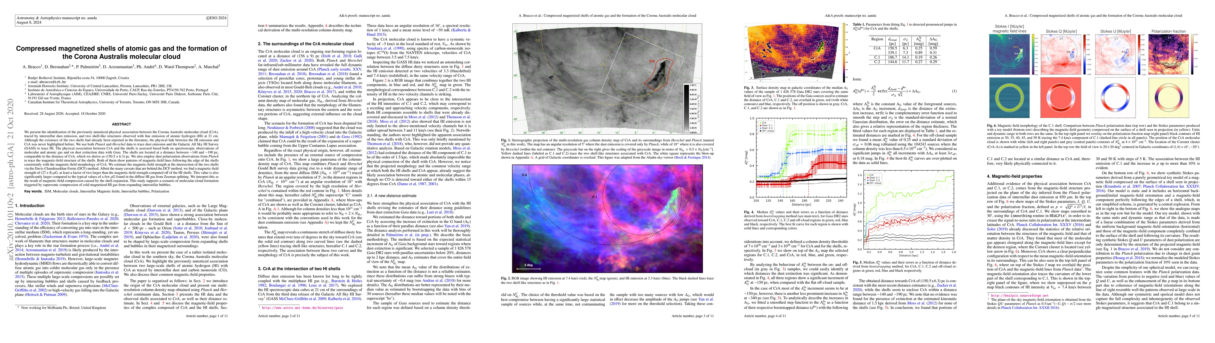 This paper identifies a previously unnoticed physical link between the Corona Australis molecular cloud and two shell-like structures observed in atomic hydrogen, suggesting that the shells' expansion compresses the magnetic field, supporting a scenario of molecular cloud formation through supersonic compression of magnetized gas.