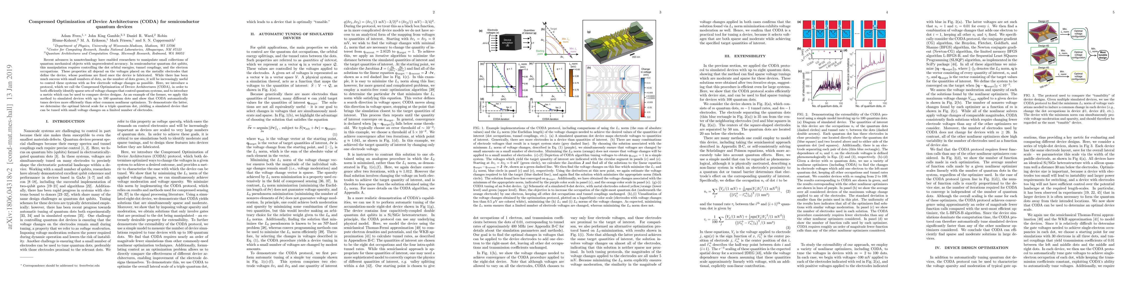 Researchers introduce a protocol called Compressed Optimization of Device Architectures (CODA) to efficiently control quantum systems with fewer electrode voltage changes. CODA optimizes device architectures for up to 100 quantum dots, outperforming other methods in efficiency.