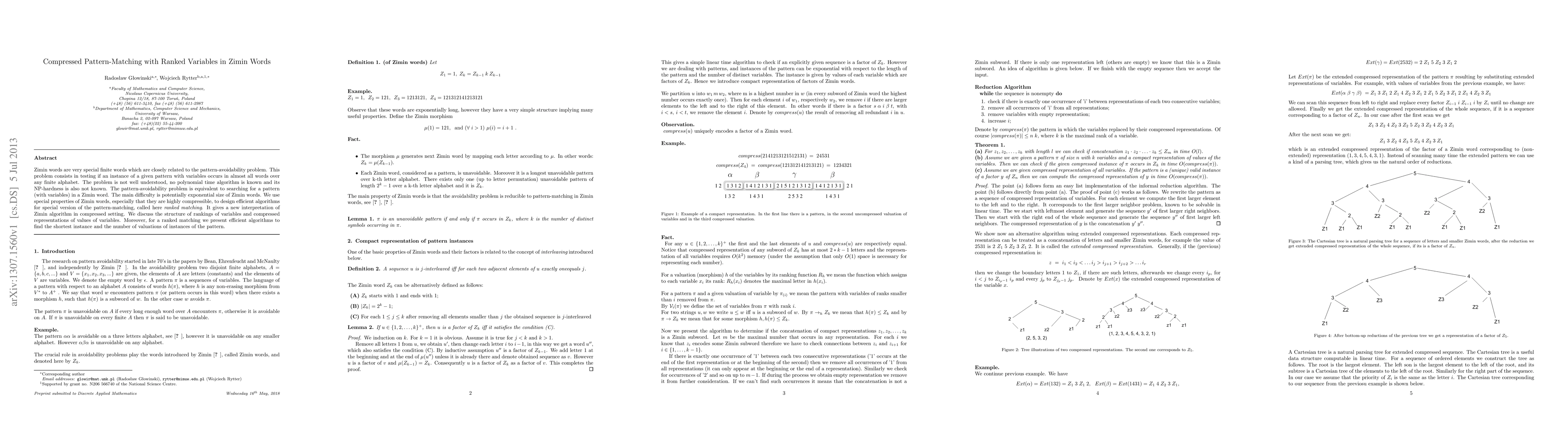 Researchers developed efficient algorithms for pattern-matching in Zimin words with ranked variables, leveraging their compressibility to solve a special version of the pattern-avoidability problem.