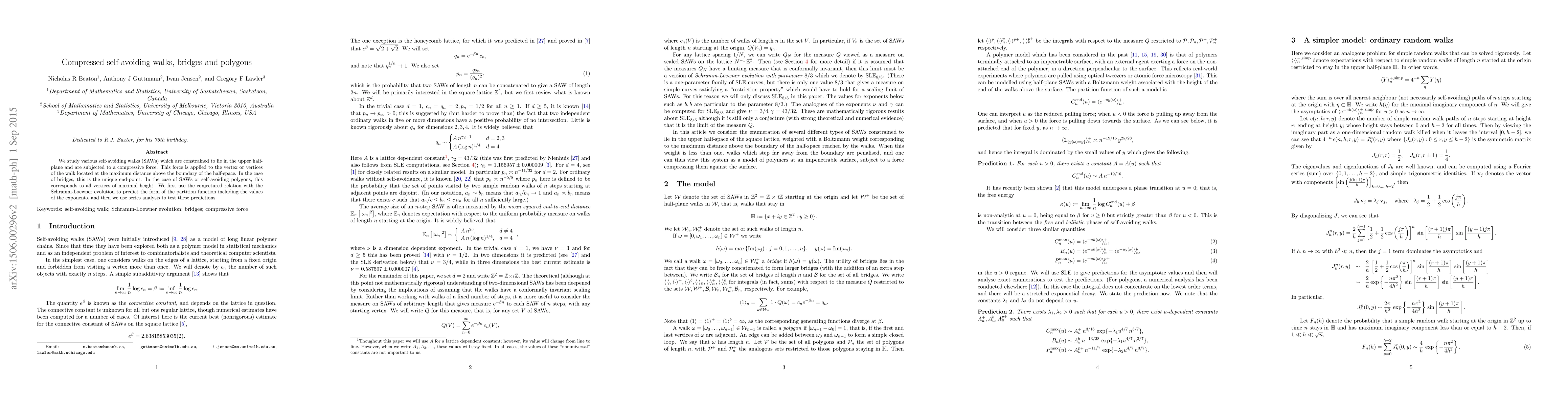 This paper investigates self-avoiding walks, bridges, and polygons constrained to the upper half-plane under compressive forces applied to vertices at maximum height. It uses conjectured relations with the Schramm-Loewner evolution to predict partition function forms and exponents, followed by series analysis to validate these predictions.
