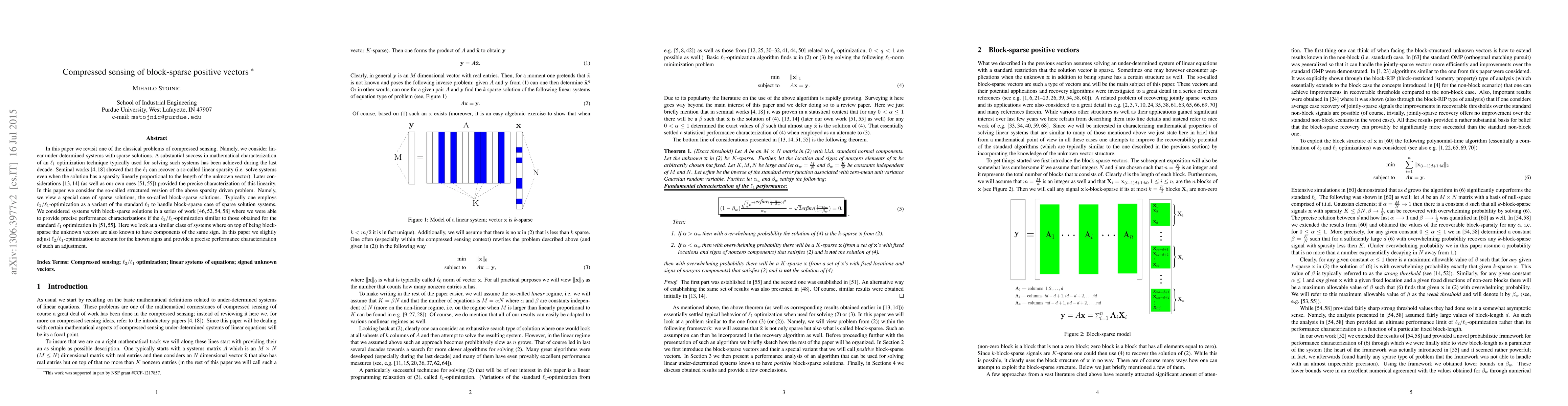 This paper revisits compressed sensing for linear under-determined systems, focusing on block-sparse positive vectors. The authors adjust $\ell_2/\ell_1$-optimization to account for the known signs of components, providing a precise performance characterization for this adjusted method.
