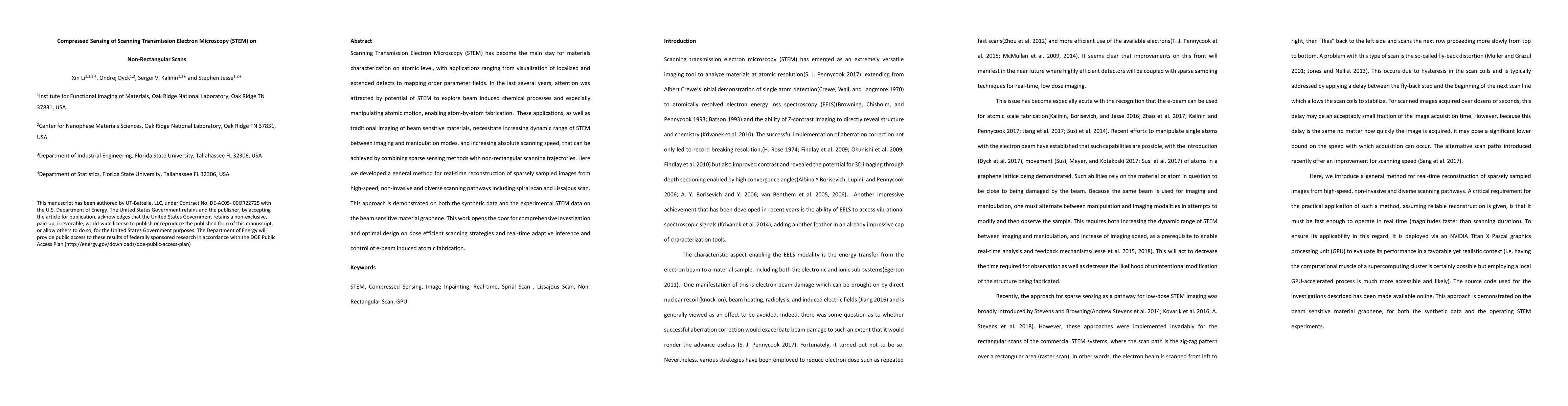 Scanning Transmission Electron Microscopy (STEM) has become the main stay for materials characterization on atomic level, with applications ranging from visualization of localized and extended defects to mapping order parameter fields. In the last several years, attention was attracted by potential of STEM to explore beam induced chemical processes and especially manipulating atomic motion, enabling atom-by-atom fabrication. These applications, as well as traditional imaging of beam sensitive materials, necessitate increasing dynamic range of STEM between imaging and manipulation modes, and increasing absolute scanning/imaging speeds, that can be achieved by combining sparse sensing methods with non-rectangular scanning trajectories. Here we developed a general method for real-time reconstruction of sparsely sampled images from high-speed, non-invasive and diverse scanning pathways. This approach is demonstrated on both the synthetic data where ground truth is known and the experimental STEM data. This work lays the foundation for future tasks such as optimal design of dose efficient scanning strategies and real-time adaptive inference and control of e-beam induced atomic fabrication.