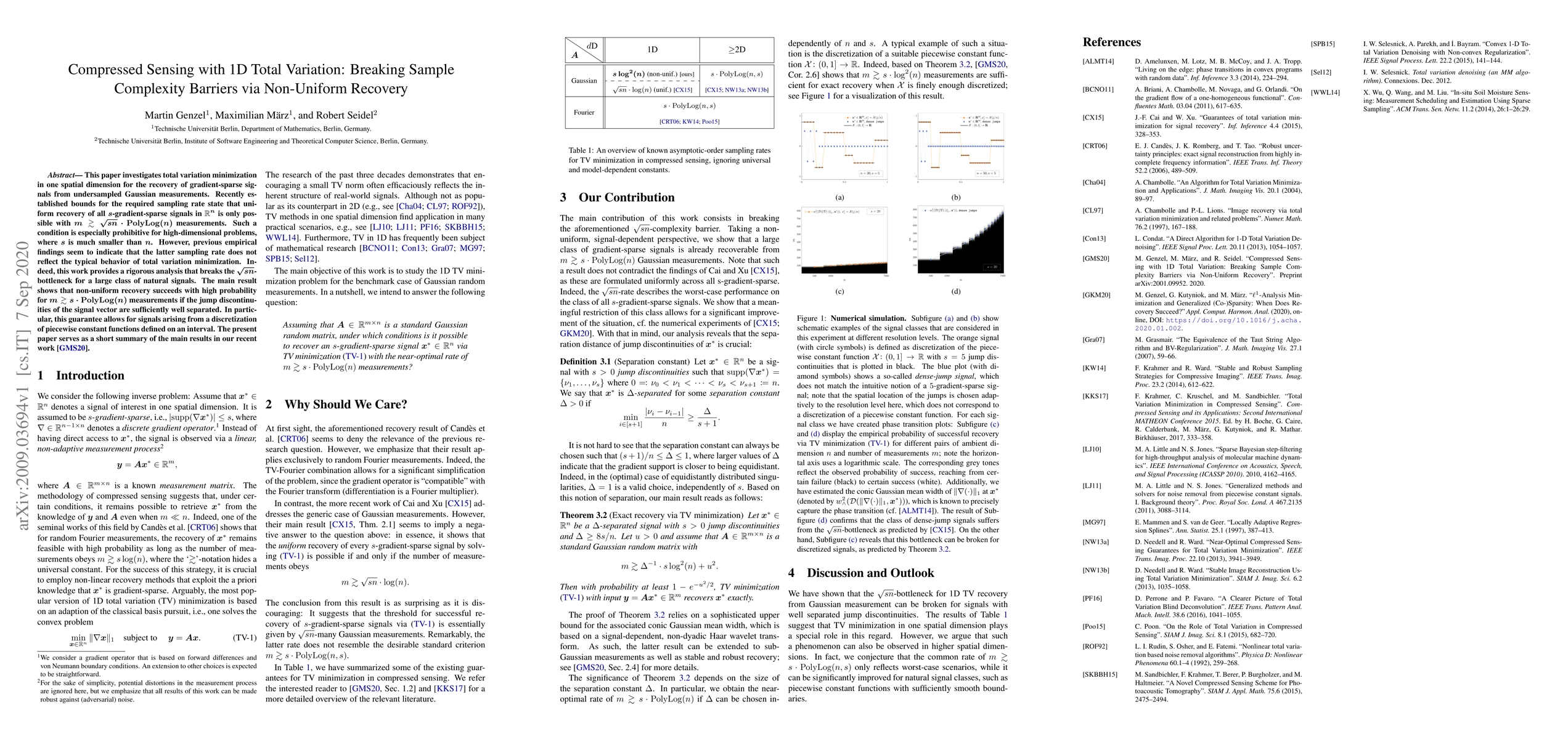 This research breaks sample complexity barriers in compressed sensing using 1D total variation. It shows non-uniform recovery of gradient-sparse signals from undersampled Gaussian measurements is possible with m ~ s * PolyLog(n) measurements, challenging previous bounds of sqrt(s n) * PolyLog(n).