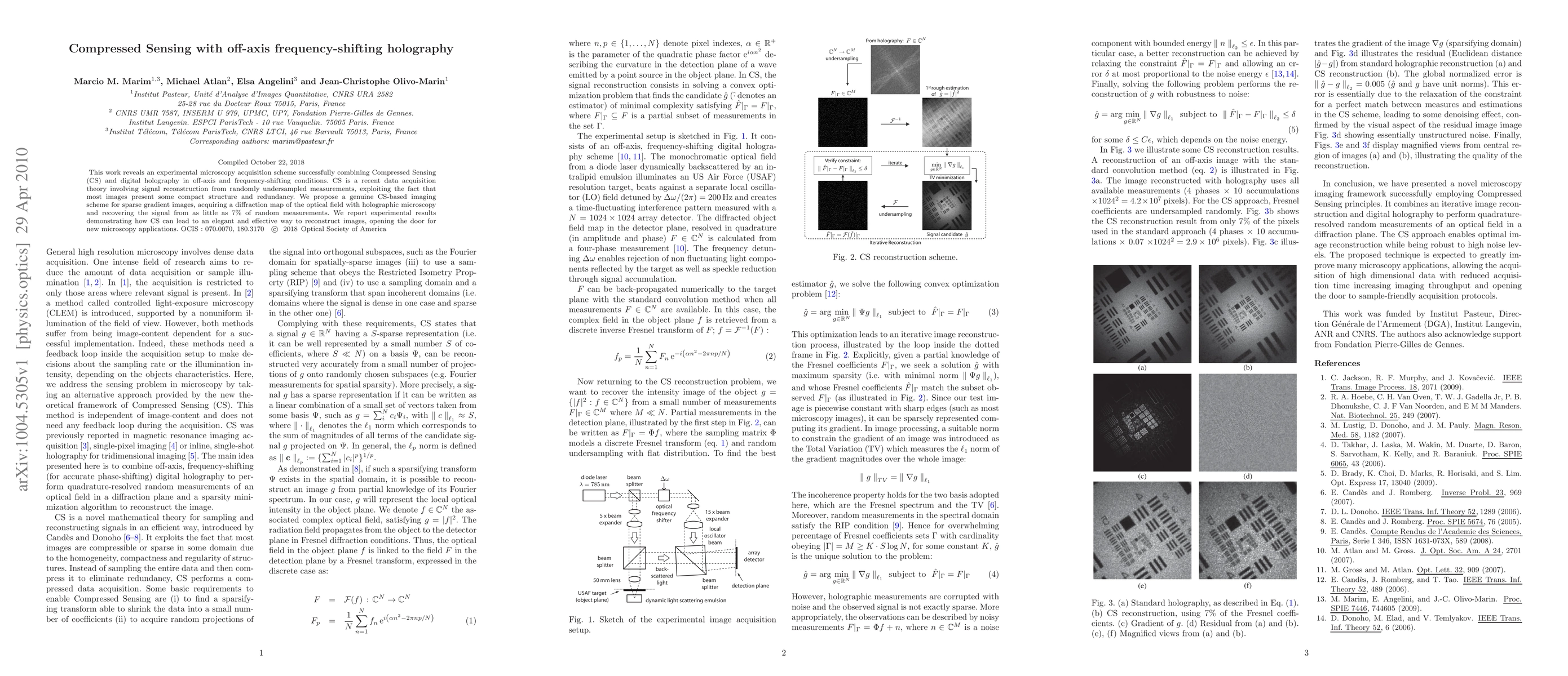 Researchers developed a microscopy acquisition scheme combining Compressed Sensing with digital holography to reconstruct images from 7% of random measurements, offering a new imaging approach for microscopy applications.