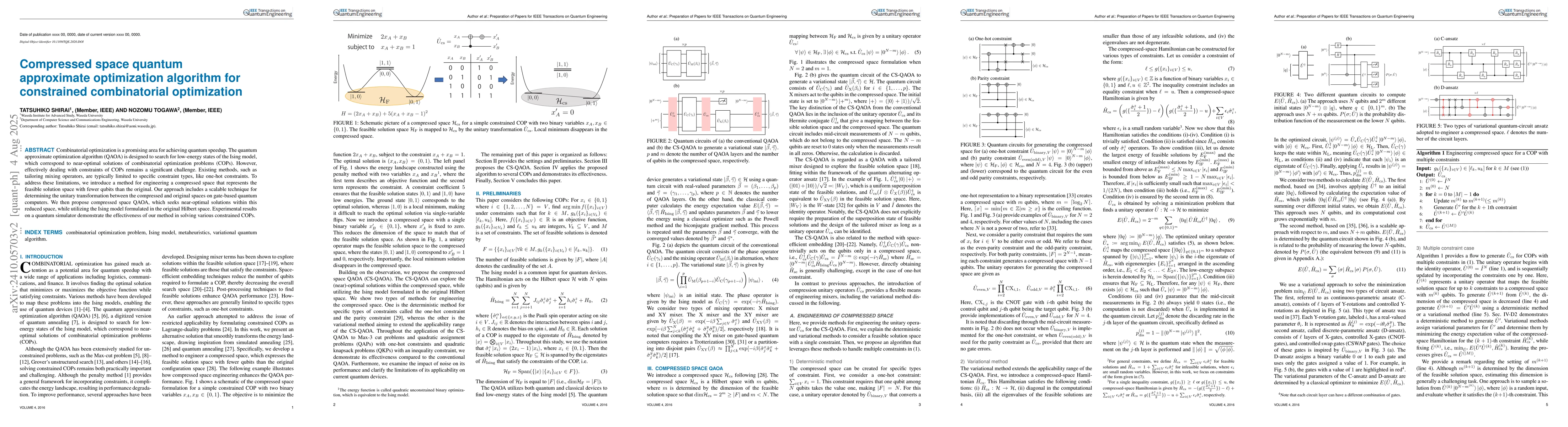 Combinatorial optimization is a promising area for achieving quantum speedup. Quantum approximate optimization algorithm (QAOA) is designed to search for low-energy states of the Ising model, which correspond to near-optimal solutions of combinatorial optimization problems (COPs). However, effectively dealing with constraints of COPs remains a significant challenge. Existing methods, such as tailoring mixing operators, are typically limited to specific constraint types, like one-hot constraints. To address these limitations, we introduce a method for engineering a compressed space that represents the feasible solution space with fewer qubits than the original. Our approach includes a scalable technique for determining the unitary transformation between the compressed and original spaces on gate-based quantum computers. We then propose compressed space QAOA, which seeks near-optimal solutions within this reduced space, while utilizing the Ising model formulated in the original Hilbert space. Experimental results on a quantum simulator demonstrate the effectiveness of our method in solving various constrained COPs.