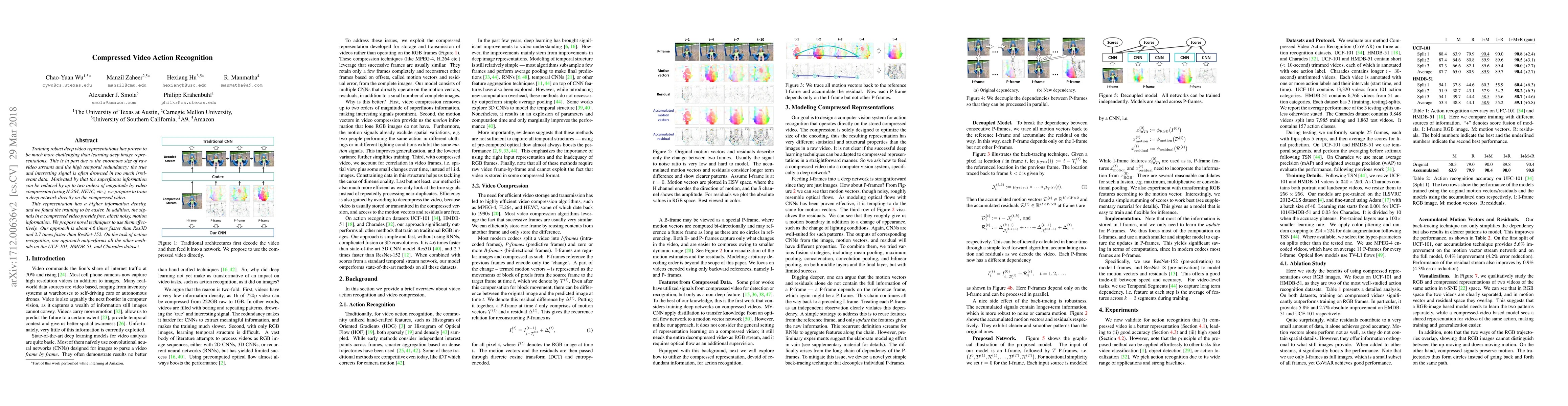 This paper proposes training deep networks on compressed video to reduce irrelevant data, leading to more efficient and effective action recognition. The approach is significantly faster than existing methods and outperforms them on multiple datasets.