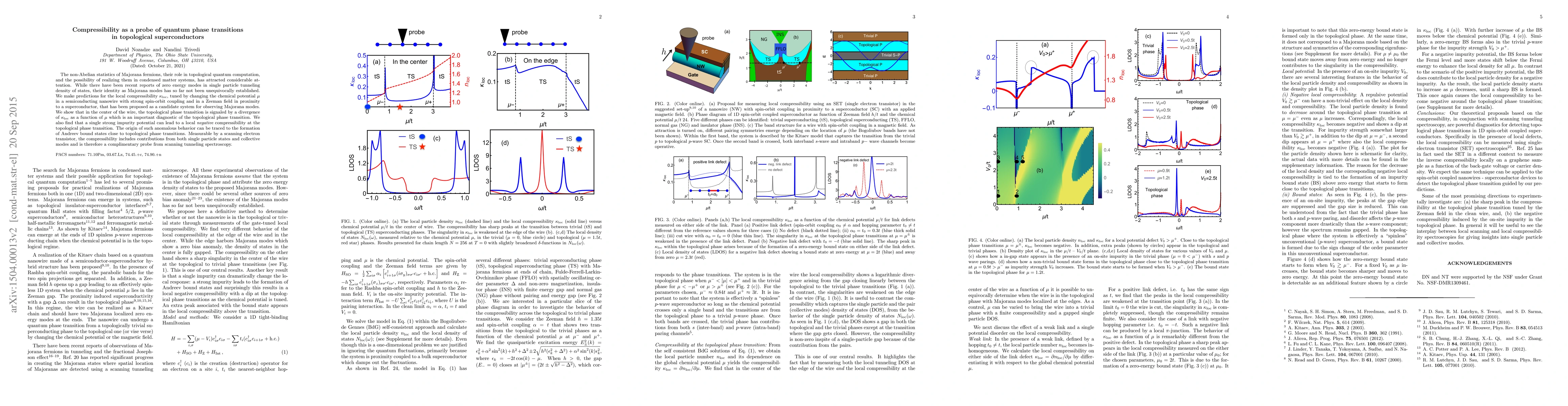 The non-Abelian statistics of Majorana fermions, their role in topological quantum computation, and the possibility of realizing them in condensed matter systems, has attracted considerable attention. While there have been recent reports of zero energy modes in single particle tunneling density of states, their identity as Majorana modes has so far not been unequivocally established. We make predictions for the local compressibility $\kappa_{\rm{loc}}$, tuned by changing the chemical potential $\mu$ in a semiconducting nanowire with strong spin-orbit coupling and in a Zeeman field in proximity to a superconductor, that has been proposed as a candidate system for observing Majorana modes. We show that in the center of the wire, the topological phase transition is signaled by a divergence of $\kappa_{\rm{loc}}$ as a function of $\mu$ which is an important diagnostic of the topological phase transition. We also find that a single strong impurity potential can lead to a local {\it negative} compressibility at the topological phase transition. The origin of such anomalous behavior can be traced to the formation of Andreev bound states close to topological phase transitions. Measurable by a scanning electron transistor, the compressibility includes contributions from both single particle states and collective modes and is therefore a complimentary probe from scanning tunneling spectroscopy.