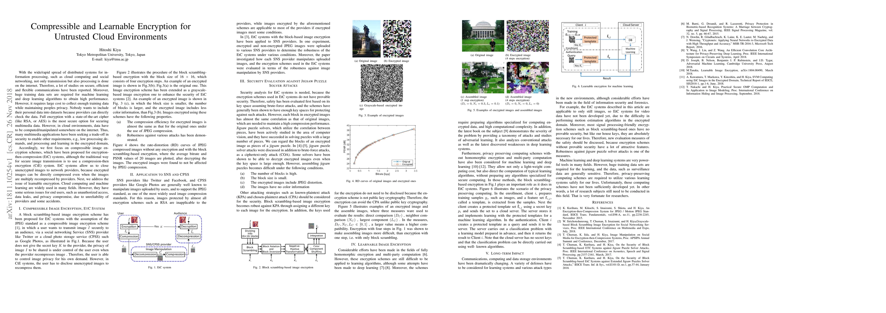 This paper explores compressible and learnable encryption methods to secure data in untrusted cloud environments, focusing on encryption-then-compression (EtC) systems to protect multimedia data while enabling efficient processing and learning in encrypted form, addressing privacy concerns in machine learning applications.
