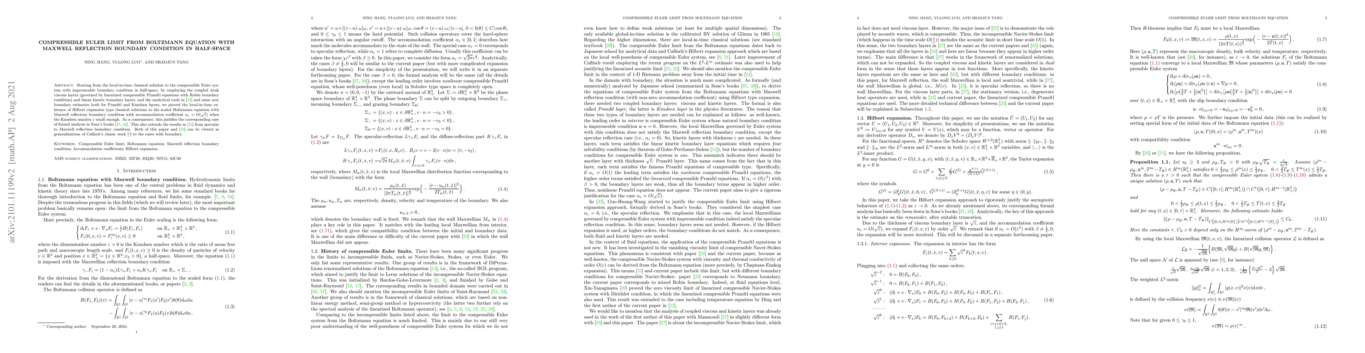 Starting from the local-in-time classical solution to the compressible Euler system with impermeable boundary condition in half-space, by employing the coupled weak viscous layers (governed by linearized compressible Prandtl equations with Robin boundary condition) and linear kinetic boundary layers, and the analytical tools in \cite{Guo-Jang-Jiang-2010-CPAM} and some new boundary estimates both for Prandtl and Knudsen layers, we proved the local-in-time existence of Hilbert expansion type classical solutions to the scaled Boltzmann equation with Maxwell reflection boundary condition with accommodation coefficient $\alpha_\varepsilon=O(\sqrt{\varepsilon})$ when the Knudsen number $\varepsilon$ small enough. As a consequence, this justifies the corresponding case of formal analysis in Sone's books \cite{Sone-2002book, Sone-2007-Book}. This also extends the results in \cite{GHW-2020} from specular to Maxwell reflection boundary condition. Both of this paper and \cite{GHW-2020} can be viewed as generalizations of Caflisch's classic work \cite{Caflish-1980-CPAM} to the cases with boundary.