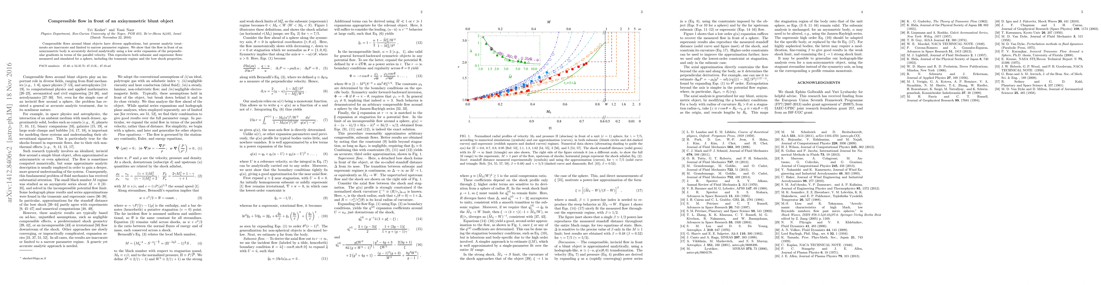 Compressible flows around blunt objects have diverse applications, but present analytic treatments are inaccurate and limited to narrow parameter regimes. We show that the flow in front of an axisymmetric body is accurately derived analytically using a low order expansion of the perpendicular gradients in terms of the parallel velocity. This reproduces both subsonic and supersonic flows measured and simulated for a sphere, including the transonic regime and the bow shock properties.