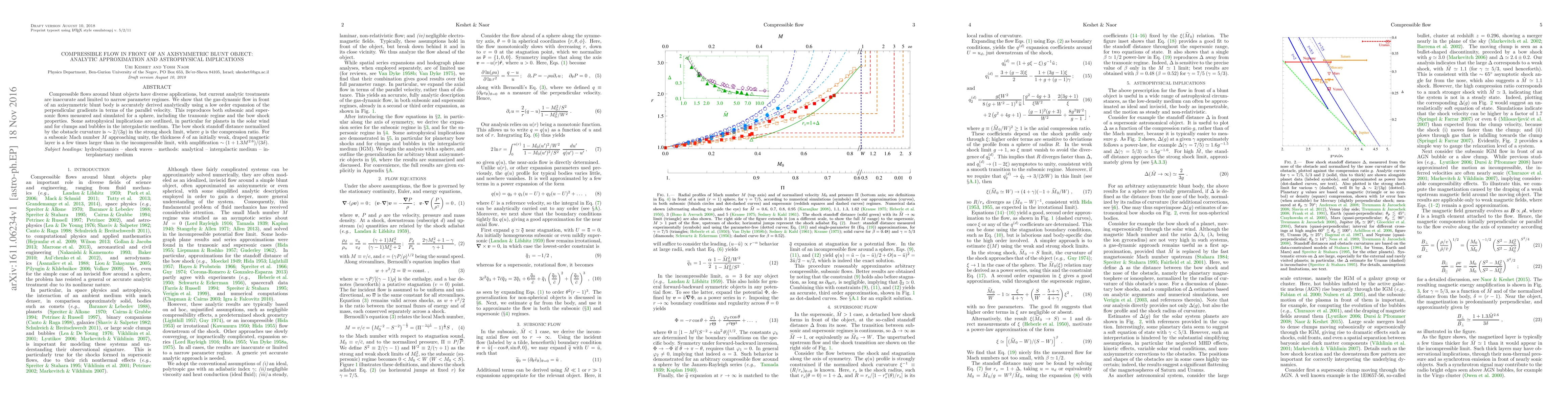 Compressible flows around blunt objects have diverse applications, but current analytic treatments are inaccurate and limited to narrow parameter regimes. We show that the gas-dynamic flow in front of an axisymmetric blunt body is accurately derived analytically using a low order expansion of the perpendicular gradients in terms of the parallel velocity. This reproduces both subsonic and supersonic flows measured and simulated for a sphere, including the transonic regime and the bow shock properties. Some astrophysical implications are outlined, in particular for planets in the solar wind and for clumps and bubbles in the intergalactic medium. The bow shock standoff distance normalized by the obstacle curvature is $\sim 2/(3g)$ in the strong shock limit, where $g$ is the compression ratio. For a subsonic Mach number $M$ approaching unity, the thickness $\delta$ of an initially weak, draped magnetic layer is a few times larger than in the incompressible limit, with amplification $\sim ({1+1.3M^{2.6}})/({3\delta})$.