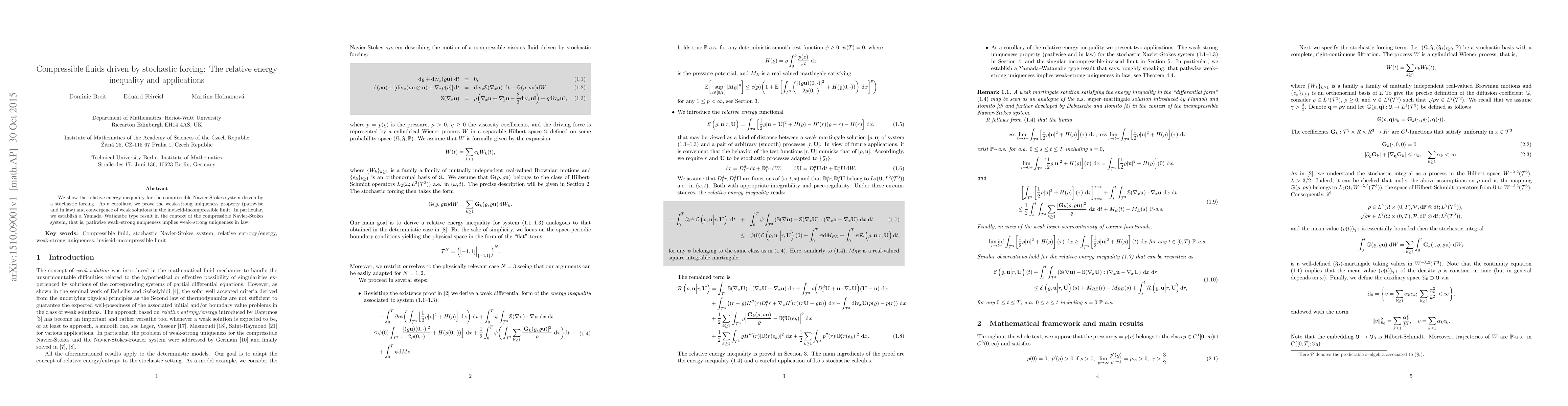 This paper establishes the relative energy inequality for the compressible Navier-Stokes system under stochastic forcing, leading to a proof of weak-strong uniqueness and convergence of weak solutions in the inviscid-incompressible limit, including a Yamada-Watanabe type result for pathwise uniqueness implying uniqueness in law.