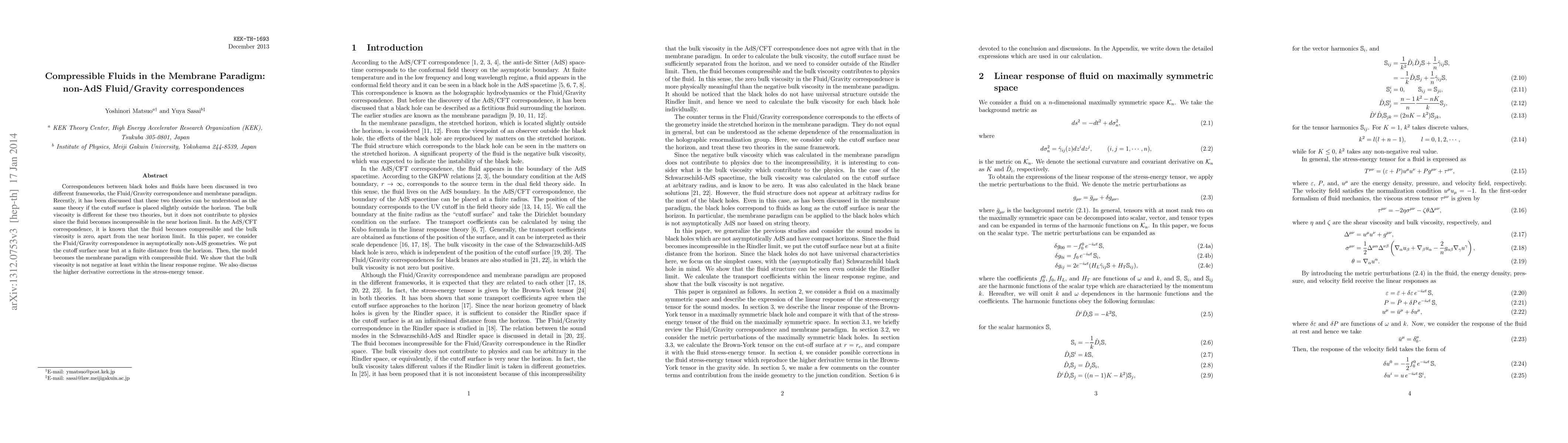 This paper explores the Fluid/Gravity correspondence in non-AdS geometries, demonstrating that placing the cutoff surface near but outside the horizon aligns the theory with the membrane paradigm featuring compressible fluids. It shows that bulk viscosity remains non-negative within the linear response regime, and discusses higher derivative corrections in the stress-energy tensor.