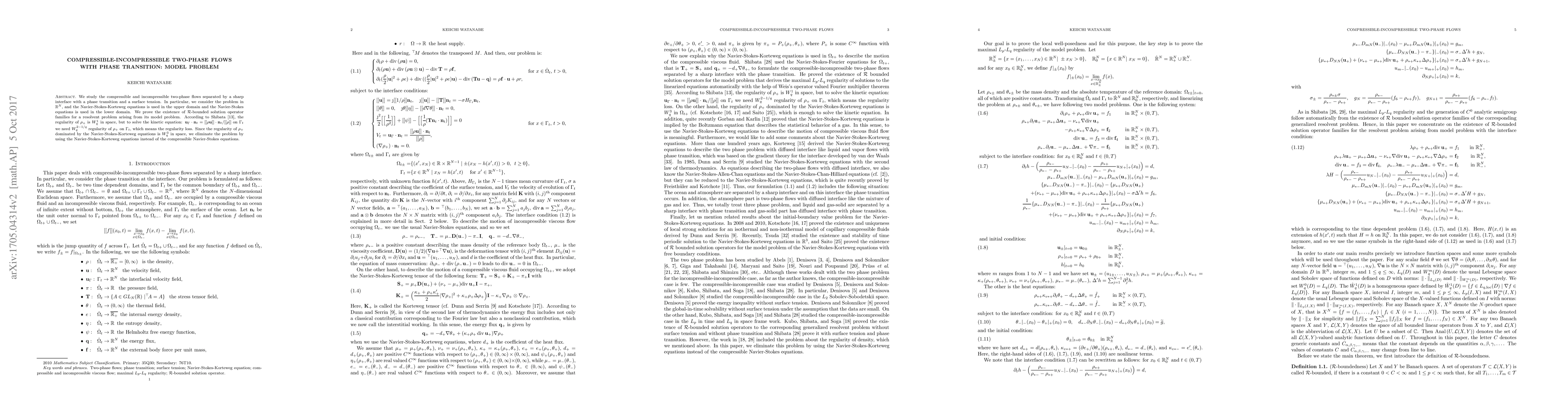 We study the compressible and incompressible two-phase flows separated by a sharp interface with a phase transition and a surface tension. In particular, we consider the problem in $\mathbb{R}^N$, and the Navier-Stokes-Korteweg equations is used in the upper domain and the Navier-Stokes equations is used in the lower domain. We prove the existence of $\mathcal{R}$-bounded solution operator families for a resolvent problem arising from its model problem. According to Shibata \cite{GS2014}, the regularity of $\rho_+$ is $W^1_q$ in space, but to solve the kinetic equation: $\mathbf{u}_\Gamma\cdot\mathbf{n}_t = [[\rho\mathbf{u}]]\cdot\mathbf{n}_t /[[\rho]]$ on $\Gamma_t$ we need $W^{2-1/q}_q$ regularity of $\rho_+$ on $\Gamma_t$, which means the regularity loss. Since the regularity of $\rho_+$ dominated by the Navier-Stokes-Korteweg equations is $W^3_q$ in space, we eliminate the problem by using the Navier-Stokes-Korteweg equations instead of the compressible Navier-Stokes equations.