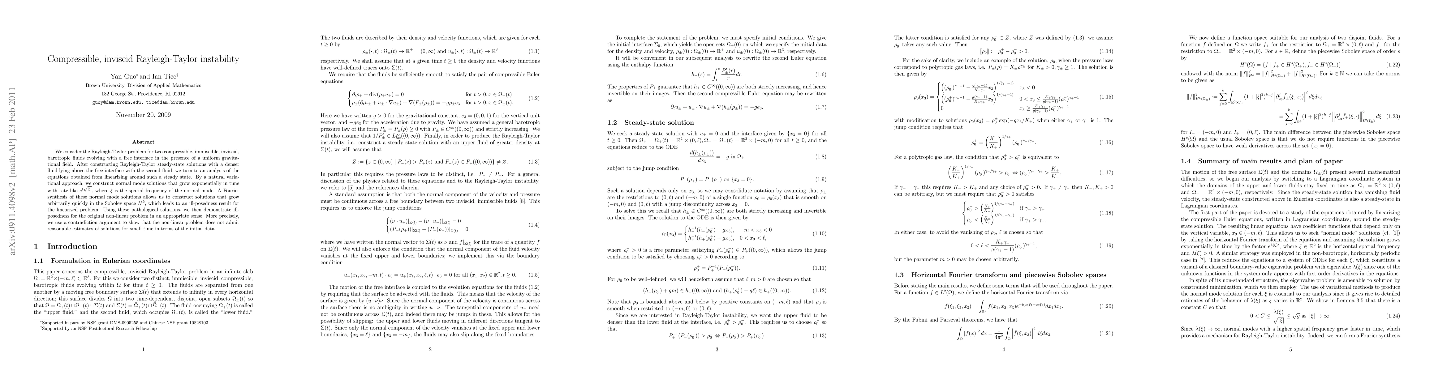 This paper investigates the compressible, inviscid Rayleigh-Taylor instability in two immiscible barotropic fluids, revealing exponential growth of normal modes and demonstrating ill-posedness for both the linearized and non-linear problems through a contradiction argument.