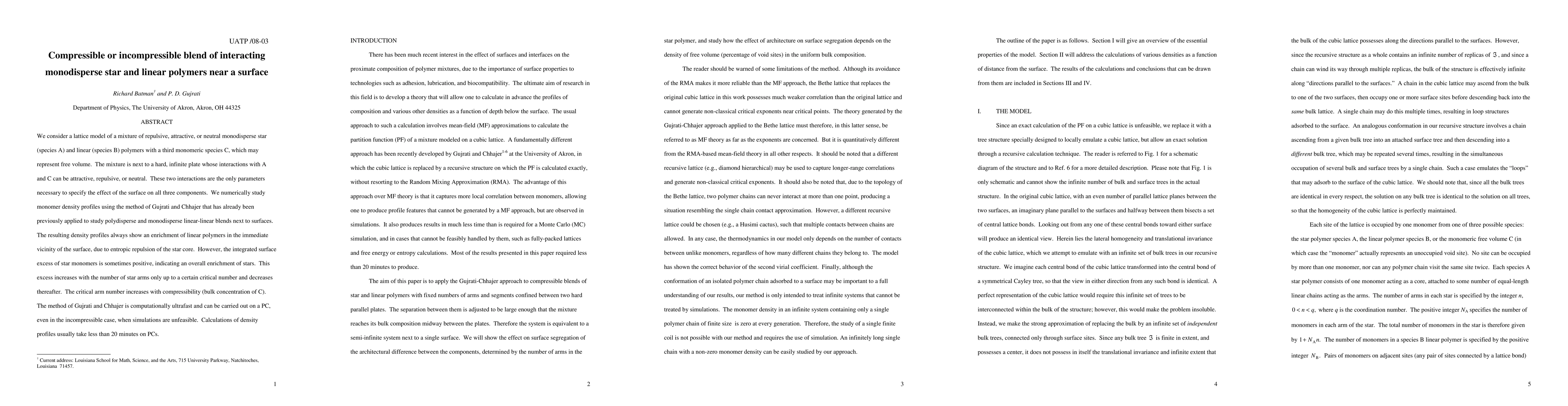 Researchers studied how polymers interact with a surface, finding that star-shaped polymers can enrich themselves near the surface due to entropic repulsion, while linear polymers tend to concentrate there due to entropic repulsion from the star core.