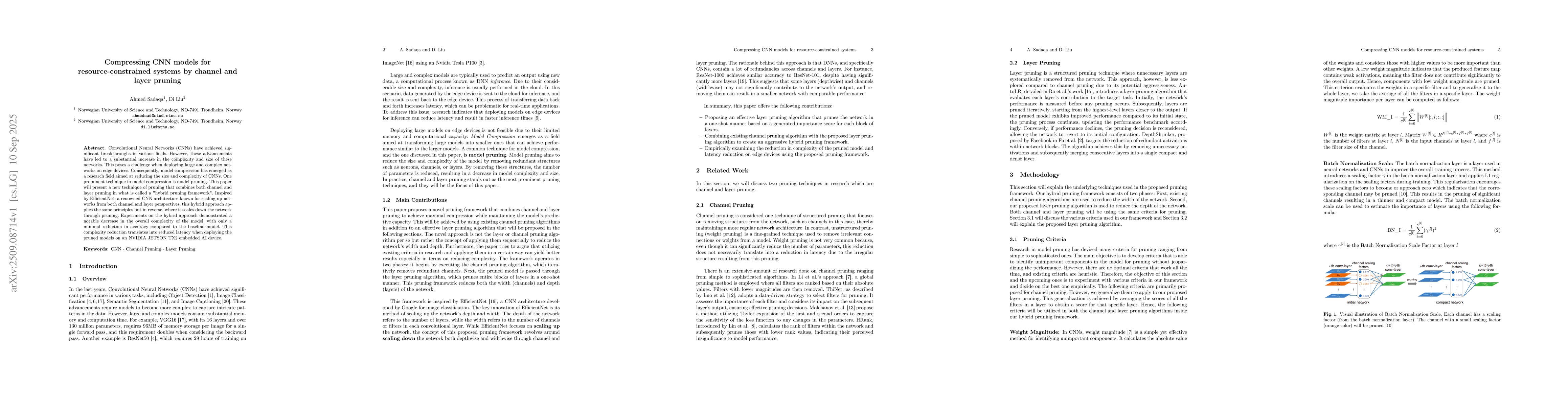 Convolutional Neural Networks (CNNs) have achieved significant breakthroughs in various fields. However, these advancements have led to a substantial increase in the complexity and size of these networks. This poses a challenge when deploying large and complex networks on edge devices. Consequently, model compression has emerged as a research field aimed at reducing the size and complexity of CNNs. One prominent technique in model compression is model pruning. This paper will present a new technique of pruning that combines both channel and layer pruning in what is called a "hybrid pruning framework". Inspired by EfficientNet, a renowned CNN architecture known for scaling up networks from both channel and layer perspectives, this hybrid approach applies the same principles but in reverse, where it scales down the network through pruning. Experiments on the hybrid approach demonstrated a notable decrease in the overall complexity of the model, with only a minimal reduction in accuracy compared to the baseline model. This complexity reduction translates into reduced latency when deploying the pruned models on an NVIDIA JETSON TX2 embedded AI device.