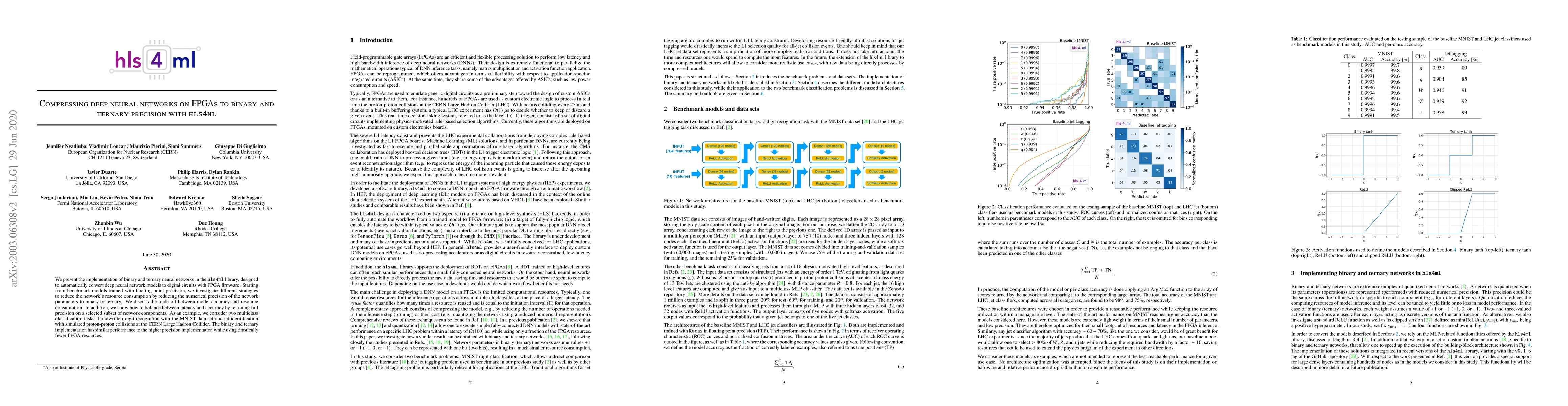 This paper explores the implementation of binary and ternary neural networks using the hls4ml library to convert deep neural networks into FPGA-compatible digital circuits. It investigates strategies to reduce resource consumption by lowering the precision of network parameters, balancing accuracy and resource use, and demonstrates the approach through multiclass classification tasks.