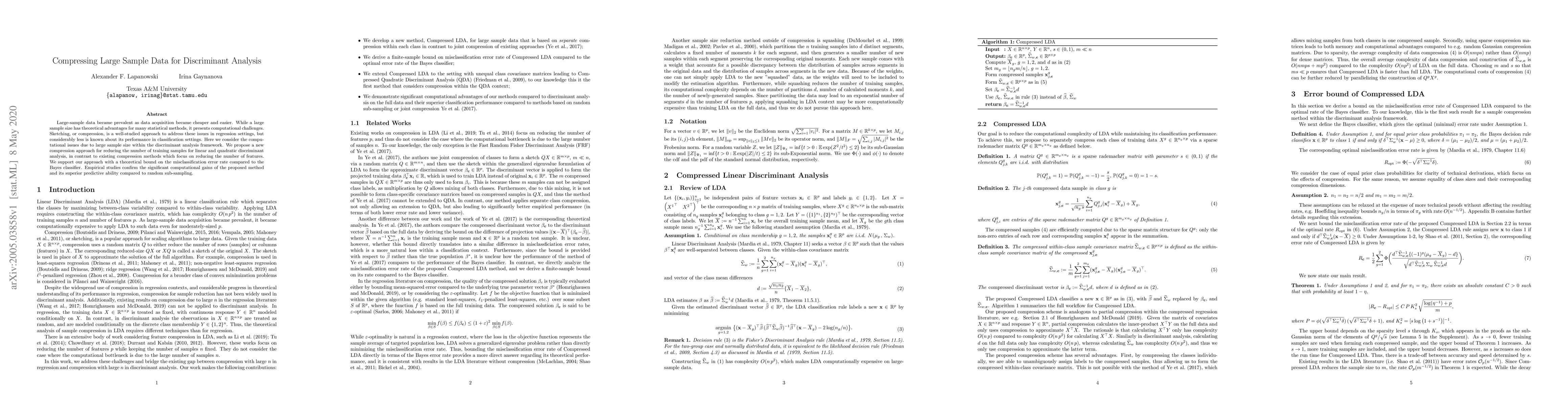 Researchers propose a compression method to reduce computational challenges of large sample data in discriminant analysis, achieving significant gains and superior predictive ability compared to random sub-sampling.