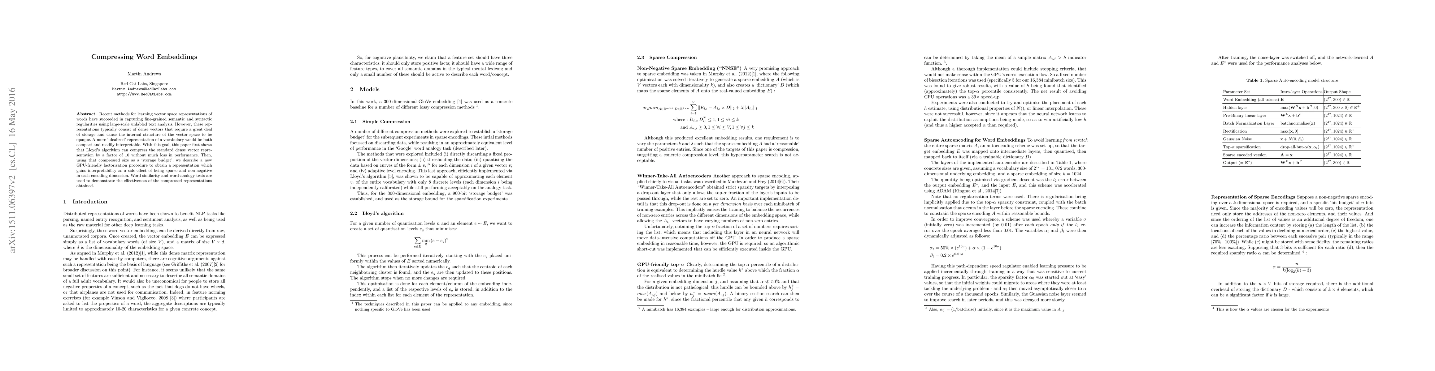 Researchers developed a method to compress word embeddings while maintaining performance, reducing memory usage by up to 10x with minimal impact.